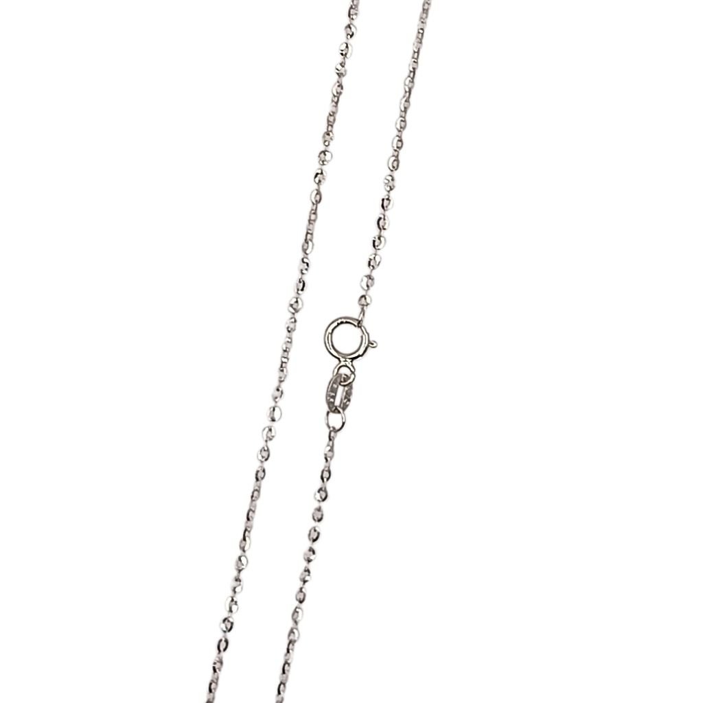 Λεπτή αλυσίδα σε σχέδιο Ball από λευκόχρυσο 9 καρατίων, με μικρές στρογγυλές χάντρες που χαρίζουν διακριτική λάμψη. Ιδανική για μικρούς σταυρούς ή φυλαχτά.