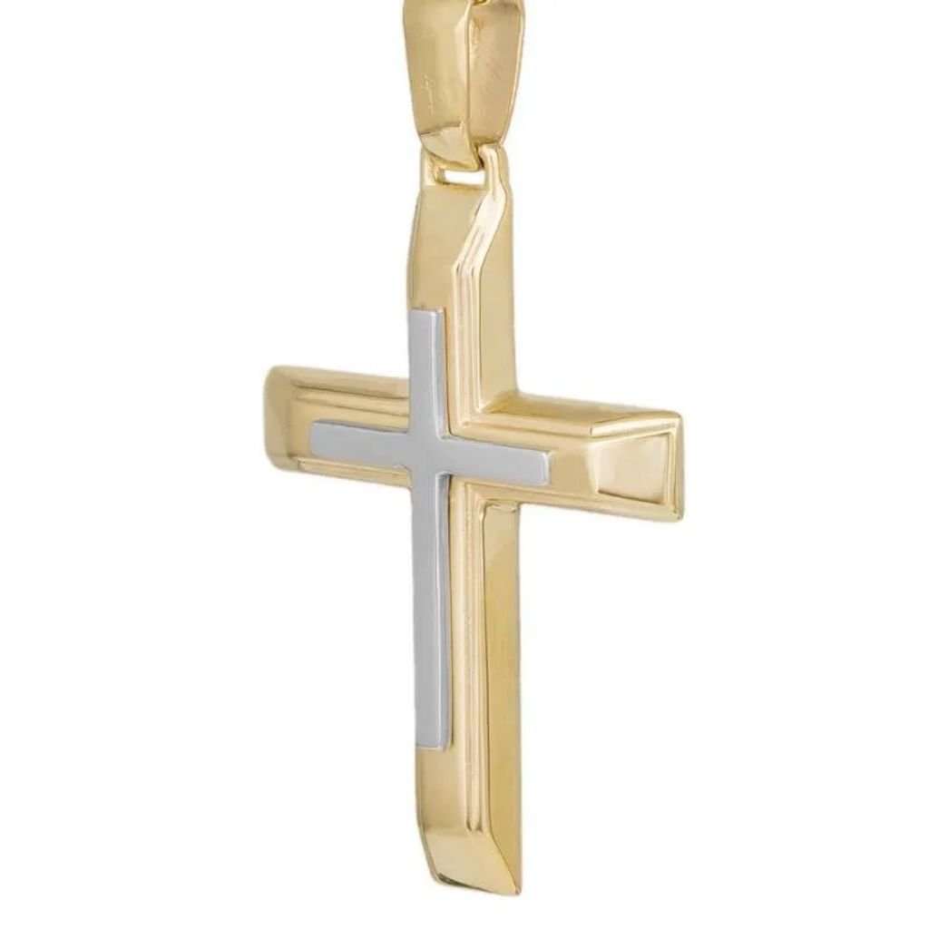 Κλασικός ανδρικός σταυρός από χρυσό και λευκόχρυσο 9 καρατίων, με ματ- λουστρέ φινίρισμα.