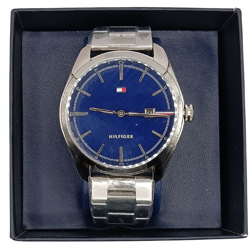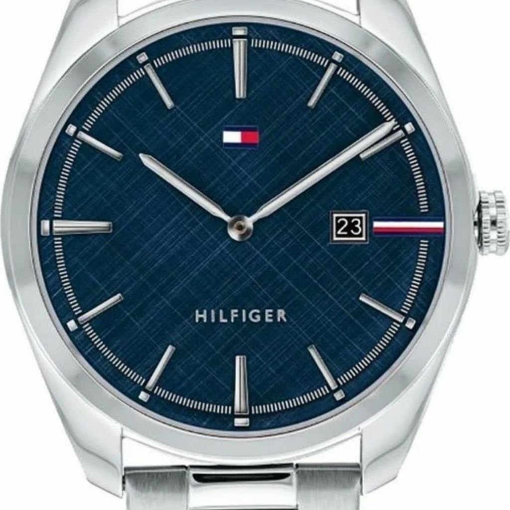 Κλασικό και κομψό ανδρικό ρολόι Tommy Hilfiger με μπλε καντράν και μίνιμαλ σχεδιασμό. Το ασημί μπρασελέ από ανοξείδωτο ατσάλι προσθέτει διαχρονική φινέτσα, ενώ η ένδειξη ημερομηνίας το καθιστά πρακτικό για κάθε μέρα.