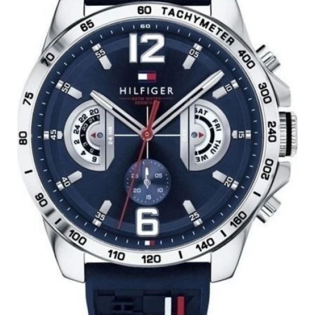 Σπορ ανδρικό ρολόι Tommy Hilfiger με μπλε καντράν και εντυπωσιακή στεφάνη tachymeter για δυναμικό look. Το λουράκι σιλικόνης προσφέρει άνεση και αντοχή, ενώ οι λειτουργίες ημέρας και 24ωρης ώρας ολοκληρώνουν τη χρηστικότητα του. Ιδανικό για άνδρες που αγαπούν το active lifestyle, με αντοχή στο νερό έως 5 ATM.