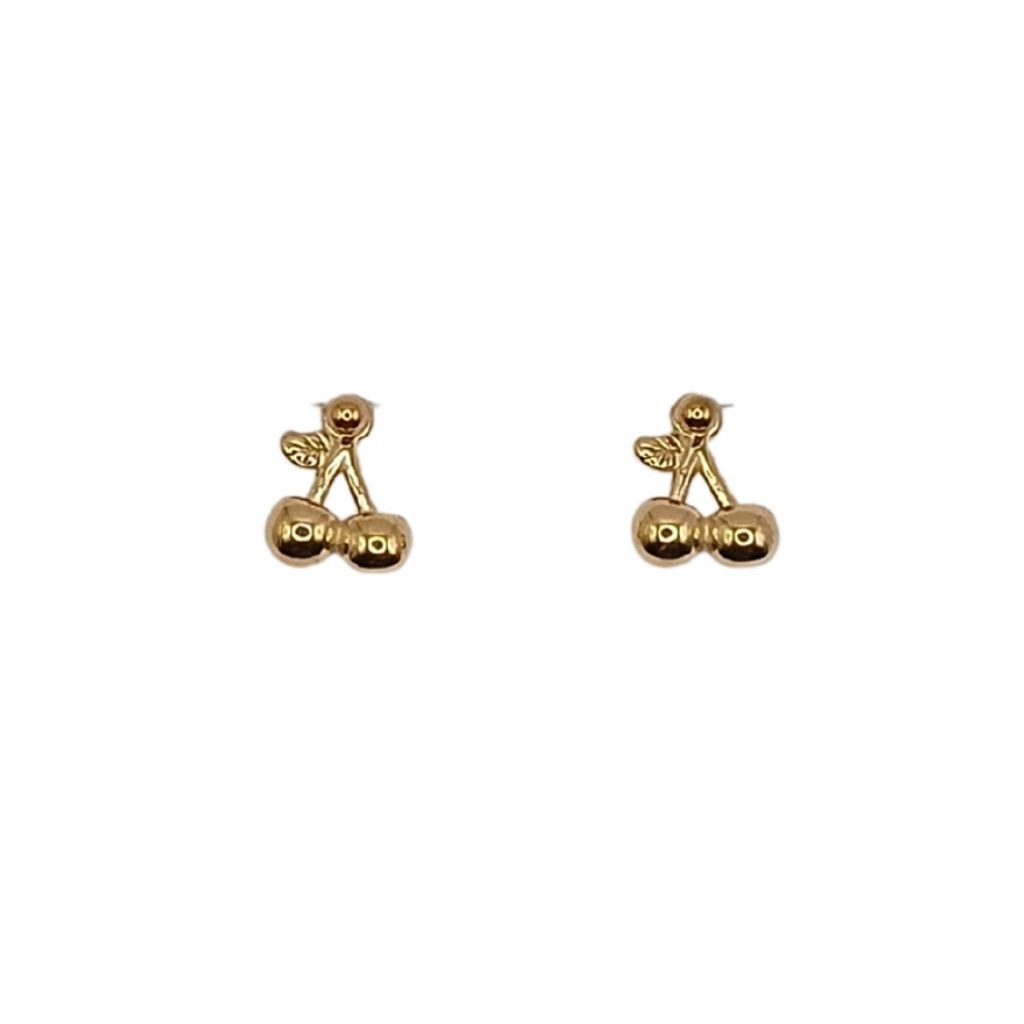 Χαριτωμένα σκουλαρίκια από ανοξείδωτο ατσάλι σε σχήμα κερασιού, με γυαλιστερό χρυσό φινίρισμα και μικρές λεπτομέρειες στα φύλλα. Ιδανικά για girly εμφανίσεις, δροσερό στυλ και καλοκαιρινή διάθεση.