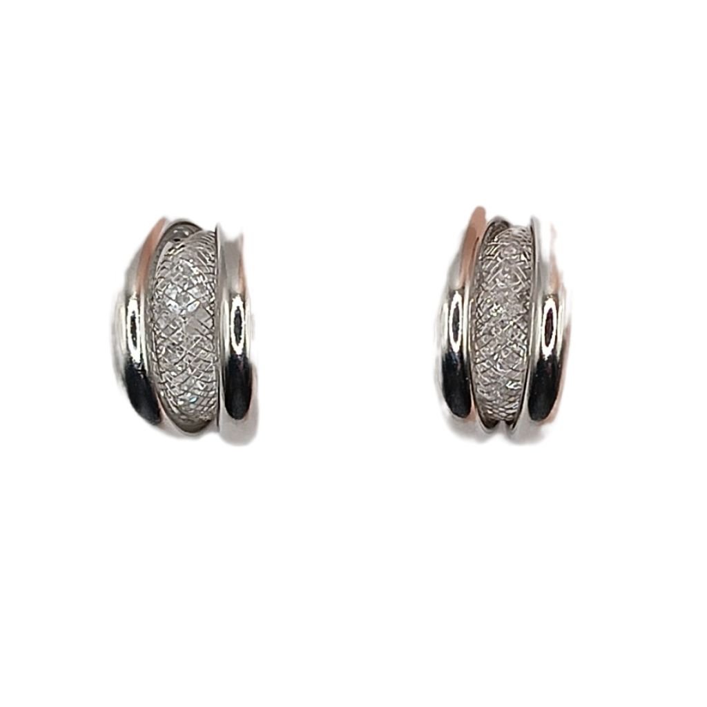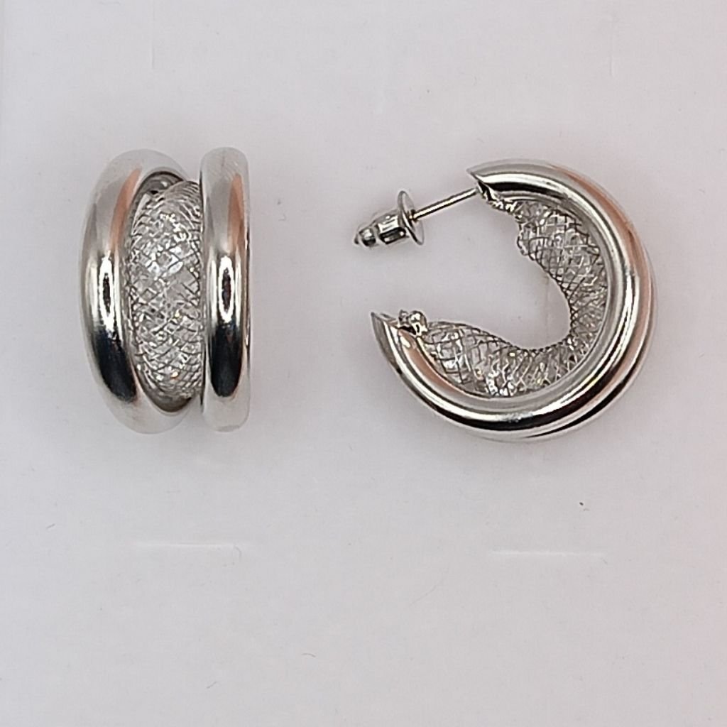 Κομψά ατσάλινα σκουλαρίκια κρίκοι με ιδιαίτερο διπλό σχέδιο. Ο συνδυασμός λείας και σφυρήλατης υφής χαρίζει λάμψη και μοντέρνο στυλ, ιδανικό για καθημερινές αλλά και πιο βραδινές εμφανίσεις. Κατασκευασμένα από ανθεκτικό ανοξείδωτο ατσάλι για άνεση και αντοχή.