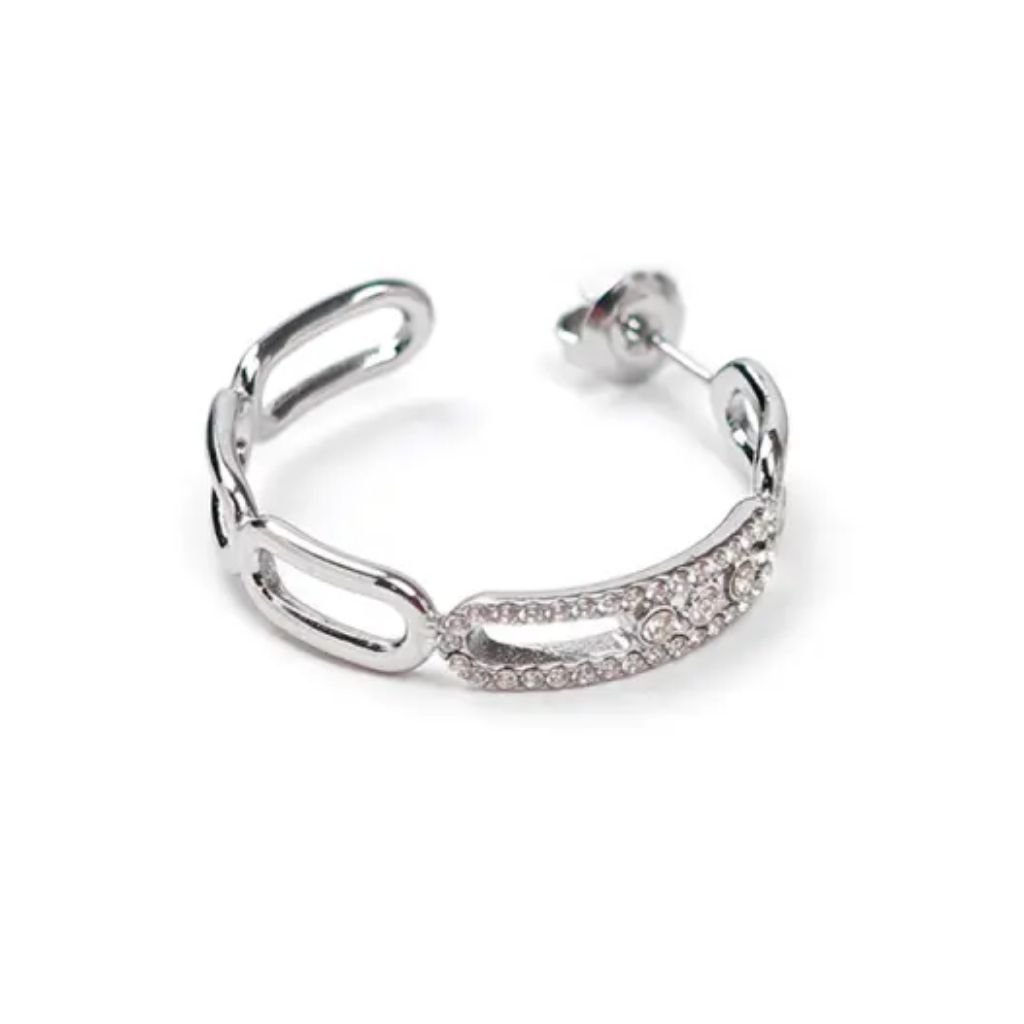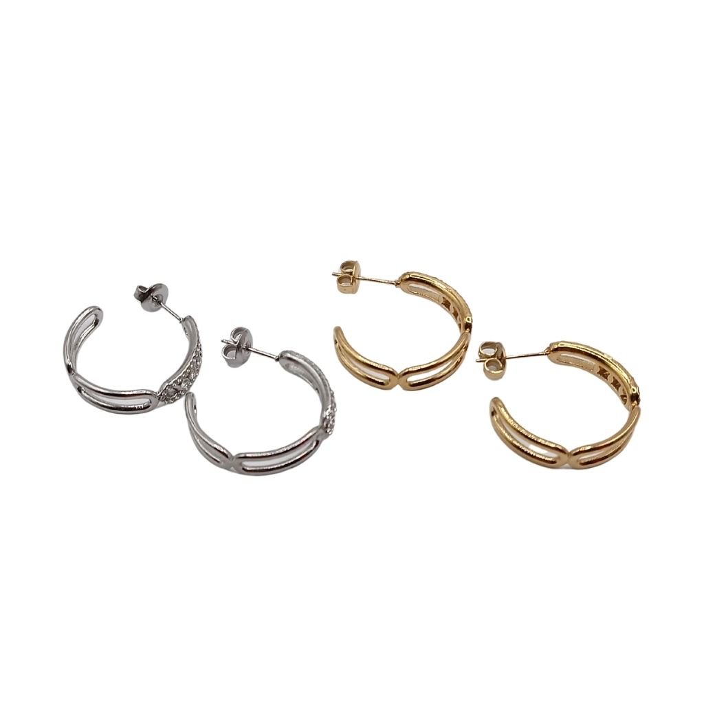 • Ασημί κρίκοι με διακριτική λάμψη και λεπτομέρειες ζιργκόν