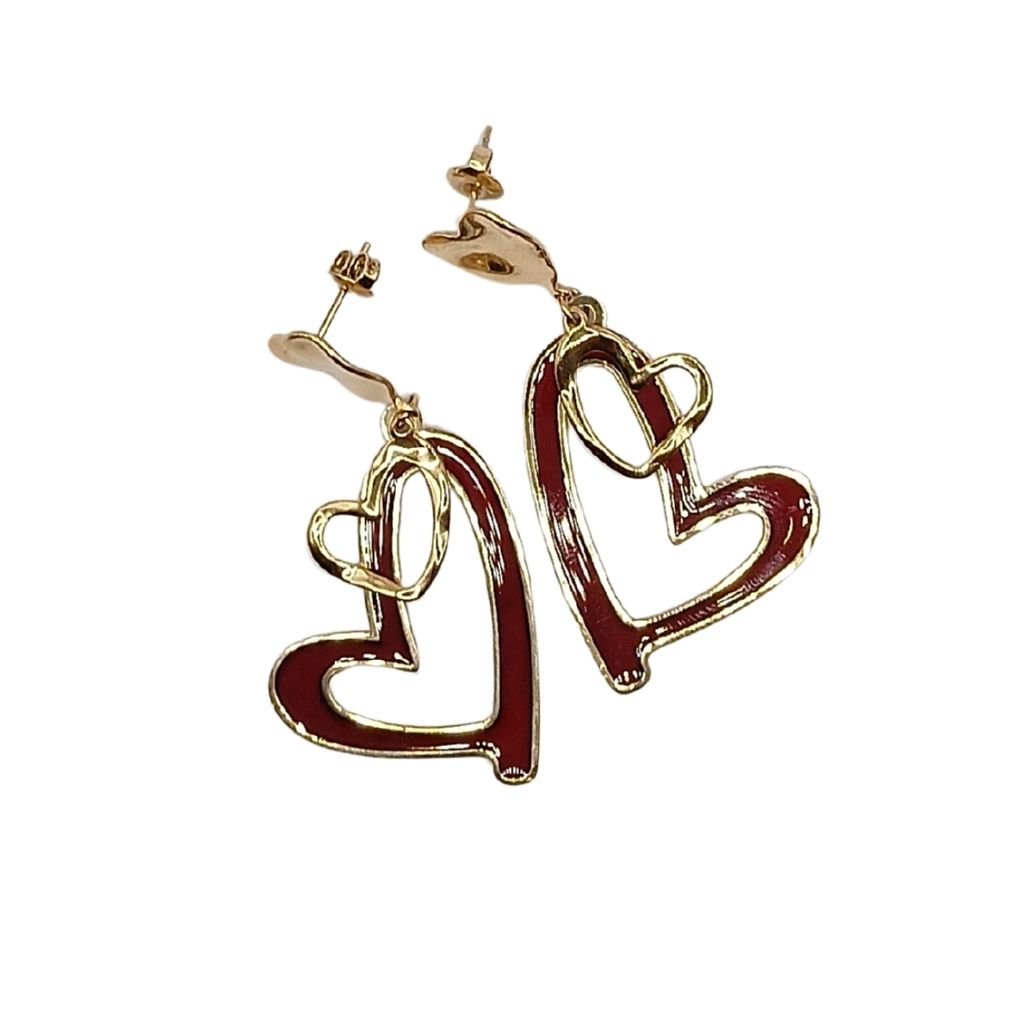 Η επάνω καρδιά είναι χρυσή γυαλιστερή, ενώ η κάτω μεγάλη καρδιά είναι διακοσμημένη με κόκκινο σμάλτο και λεπτό χρυσό περίγραμμα.