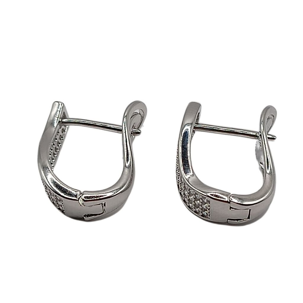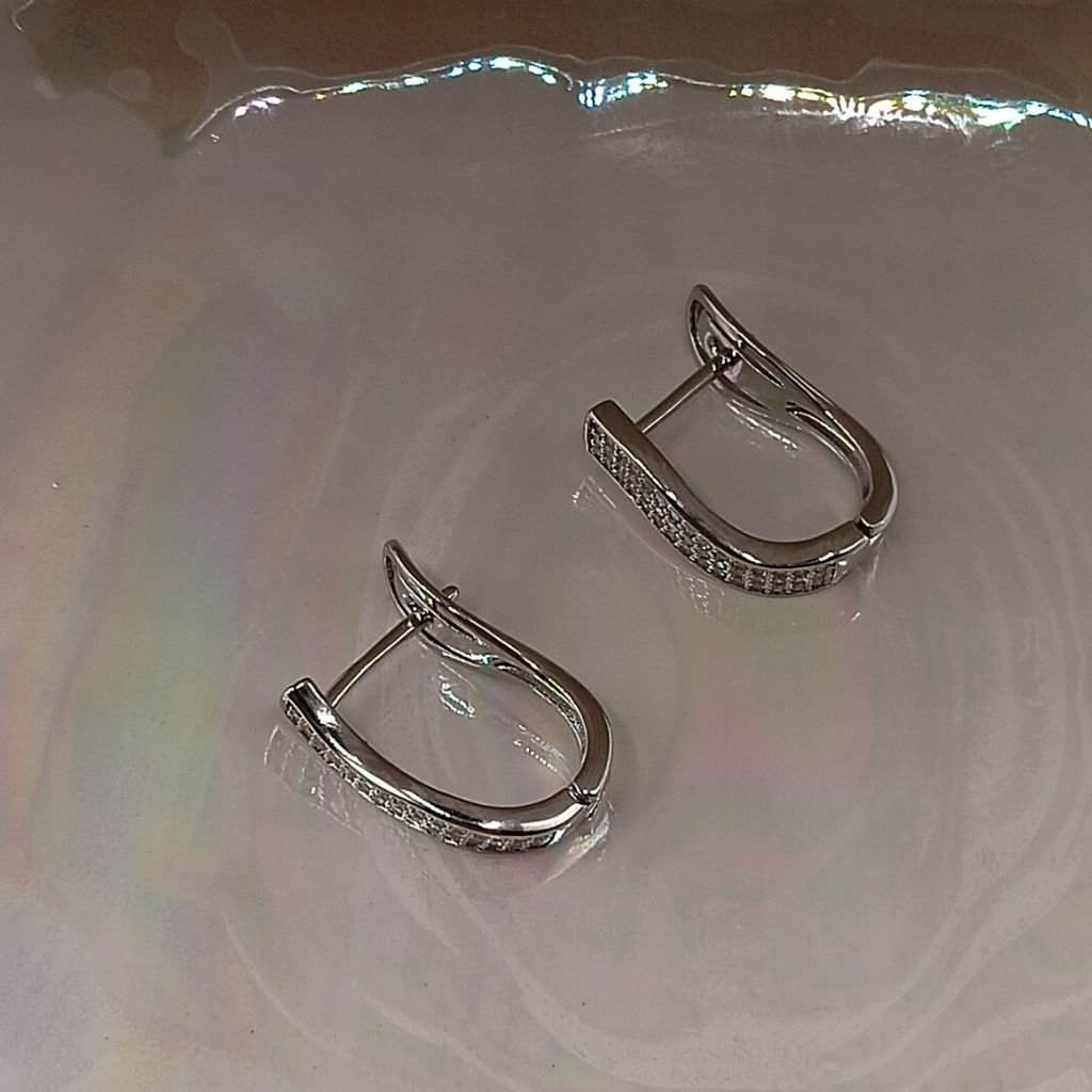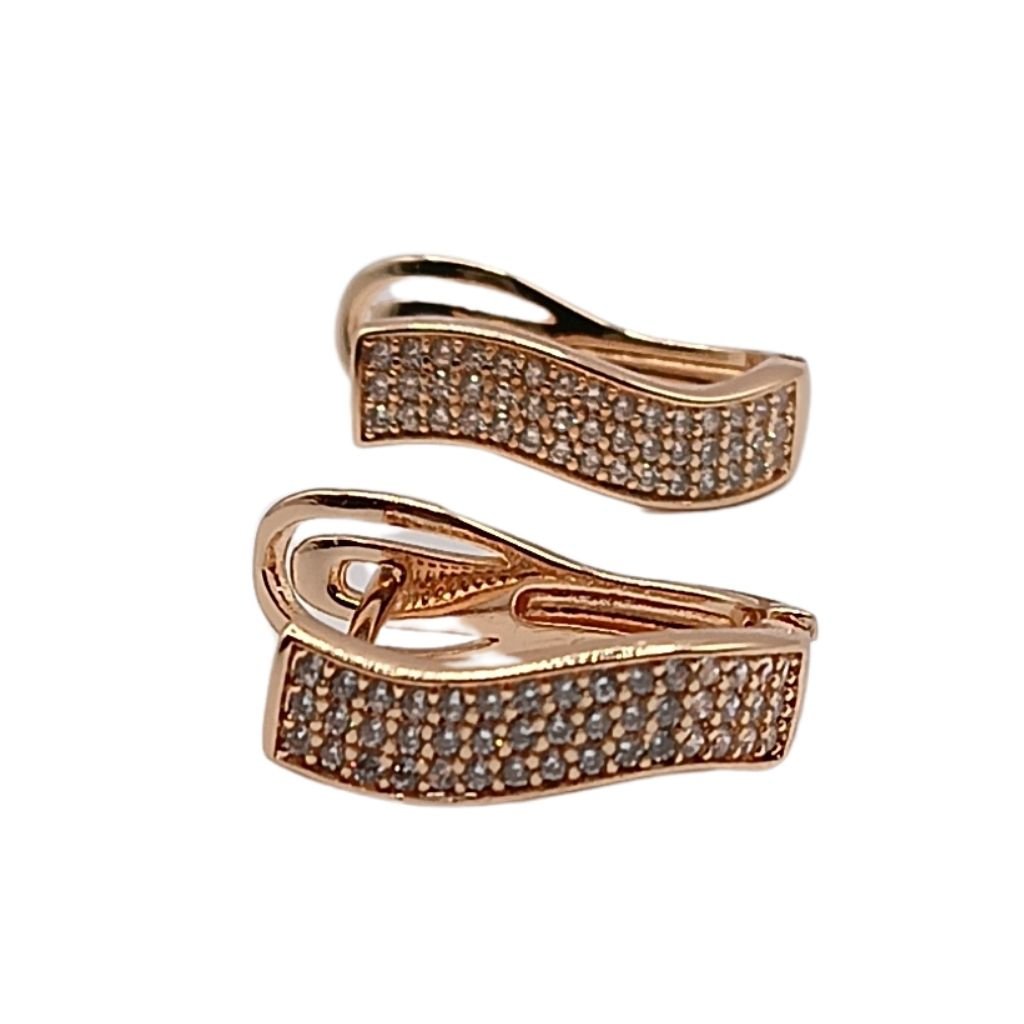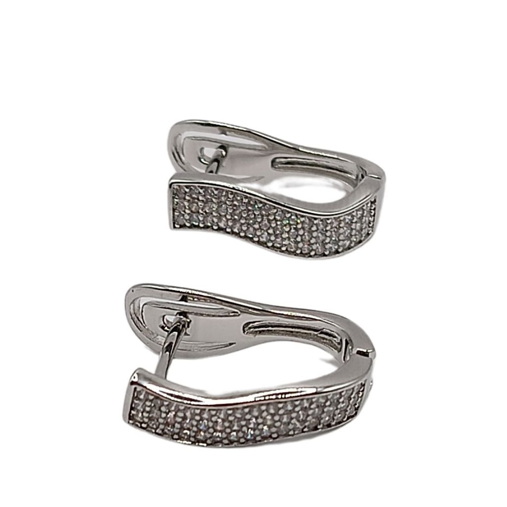 Σκουλαρίκια από ανοξείδωτο ατσάλι  με κυματιστό design και επένδυση από λαμπερά ζιργκόν. Ιδανικά για εμφανίσεις με μοντέρνα κομψότητα, χωρίς να βαραίνουν το αυτί.