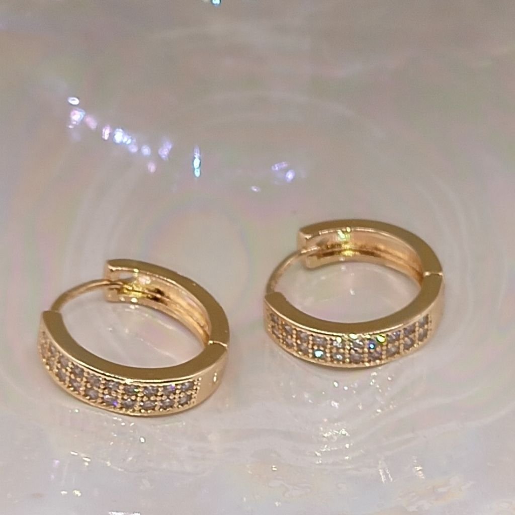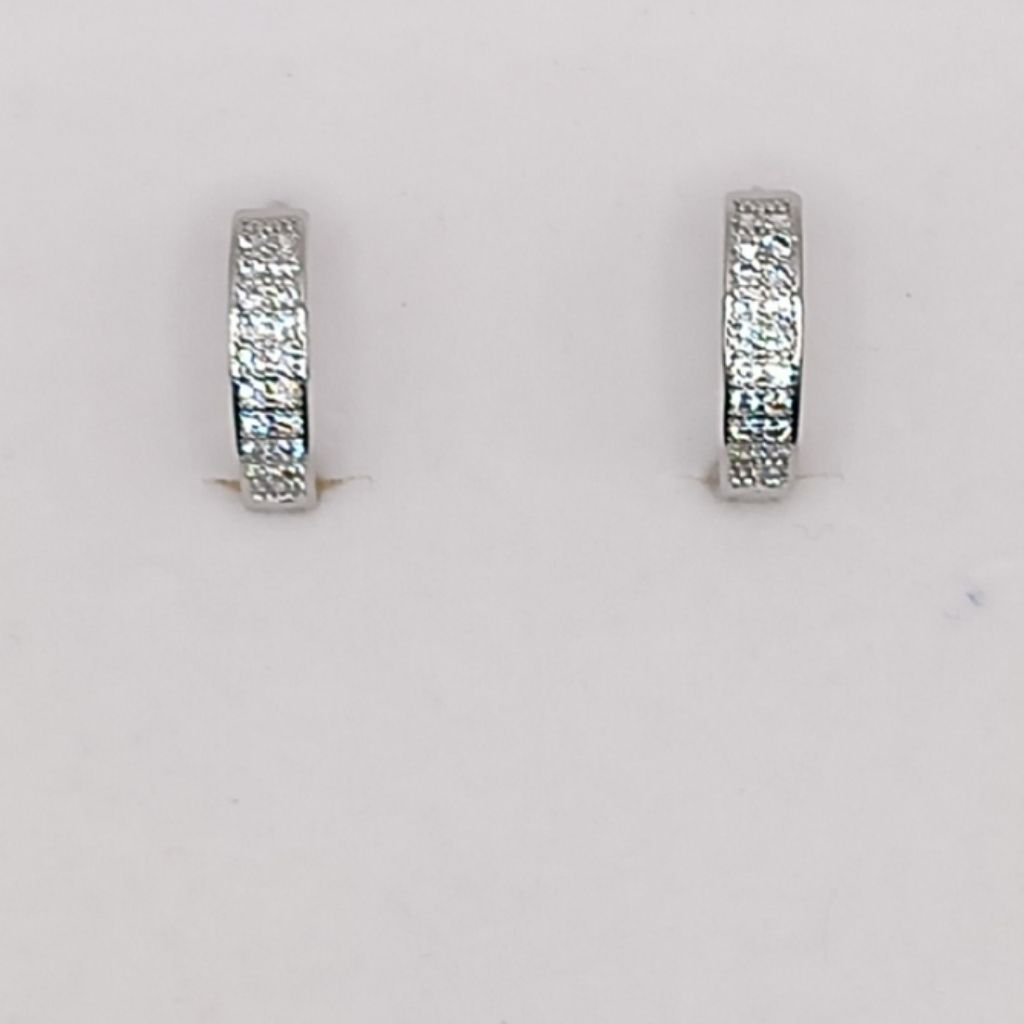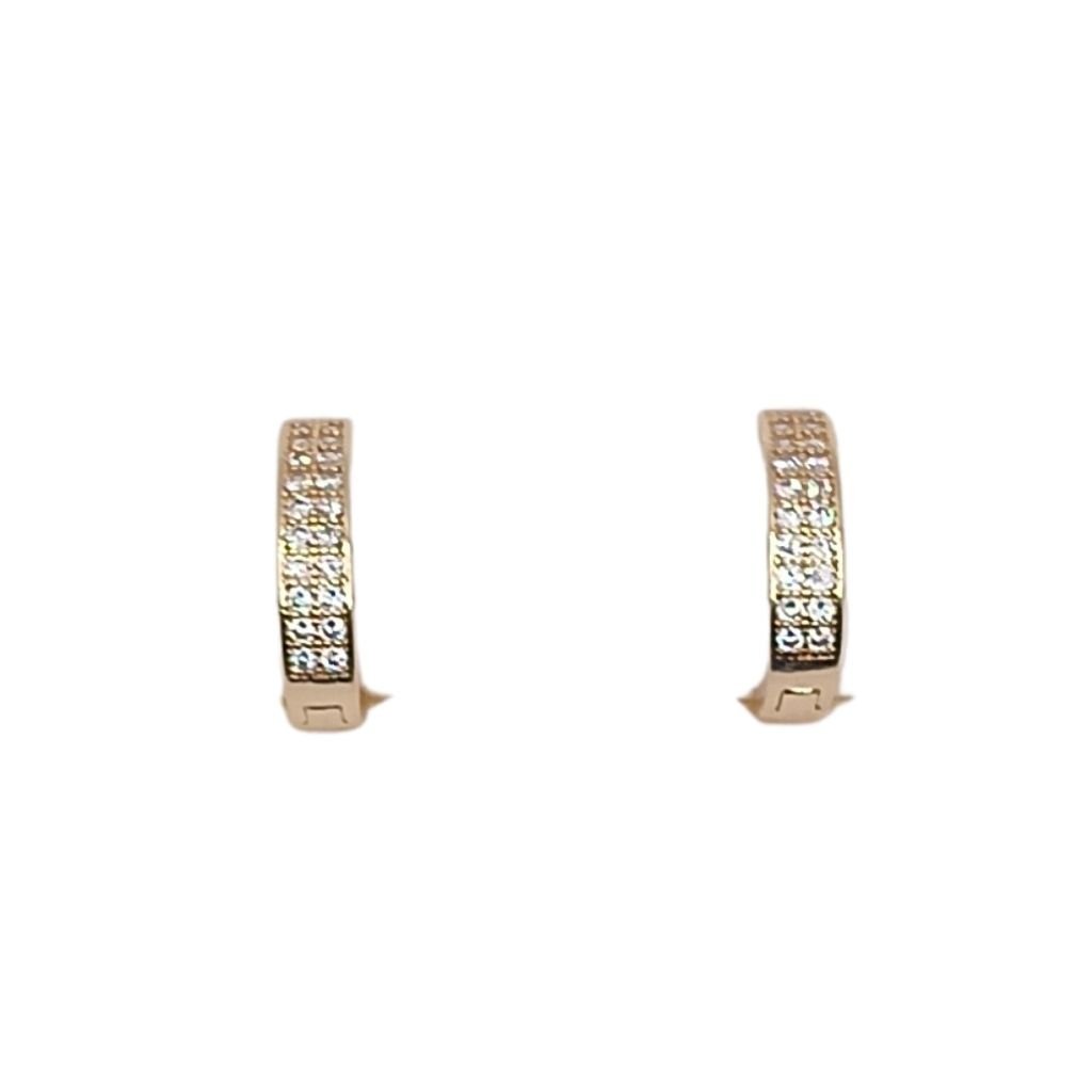 Κλασικοί κρίκοι από ανοξείδωτο ατσάλι  με διπλή σειρά από λαμπερά λευκά ζιργκόν στο μπροστινό μέρος. Ένα διακριτικό αλλά εντυπωσιακό σχέδιο που φοριέται από το πρωί έως το βράδυ.