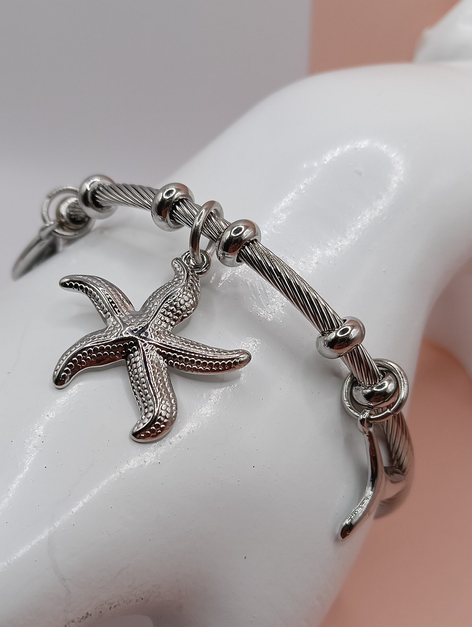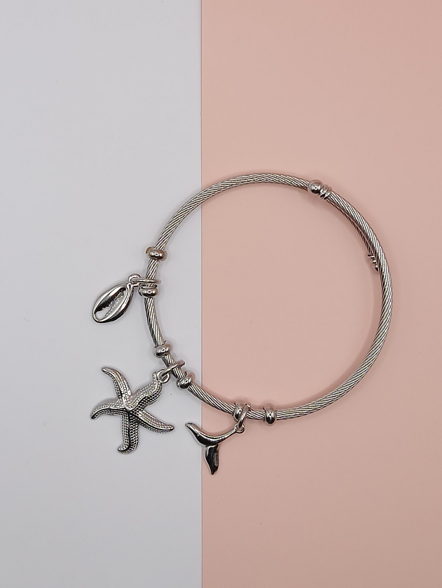 Καλοκαιρινό βραχιόλι από ανοξείδωτο ατσάλι με λεπτομέρειες σε κοχύλι, αστερία και ουρά γοργόνας.