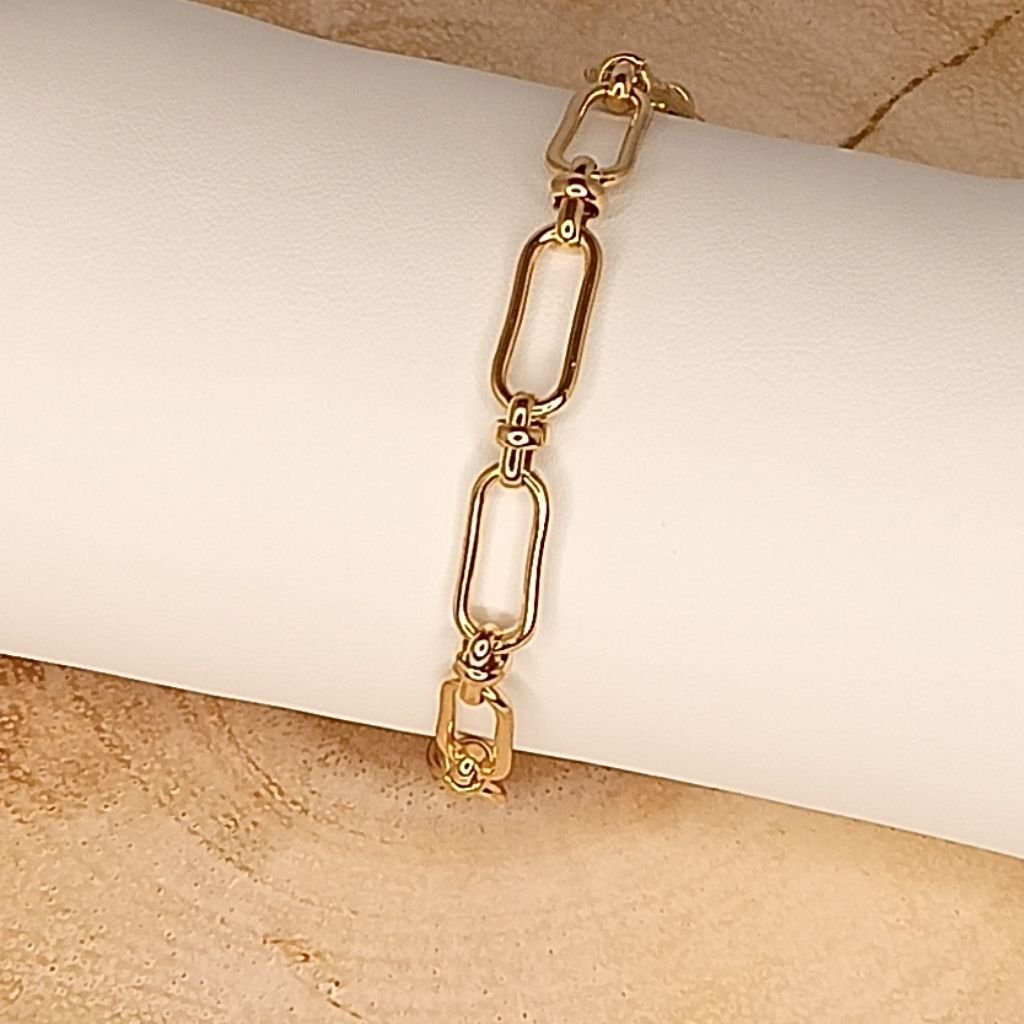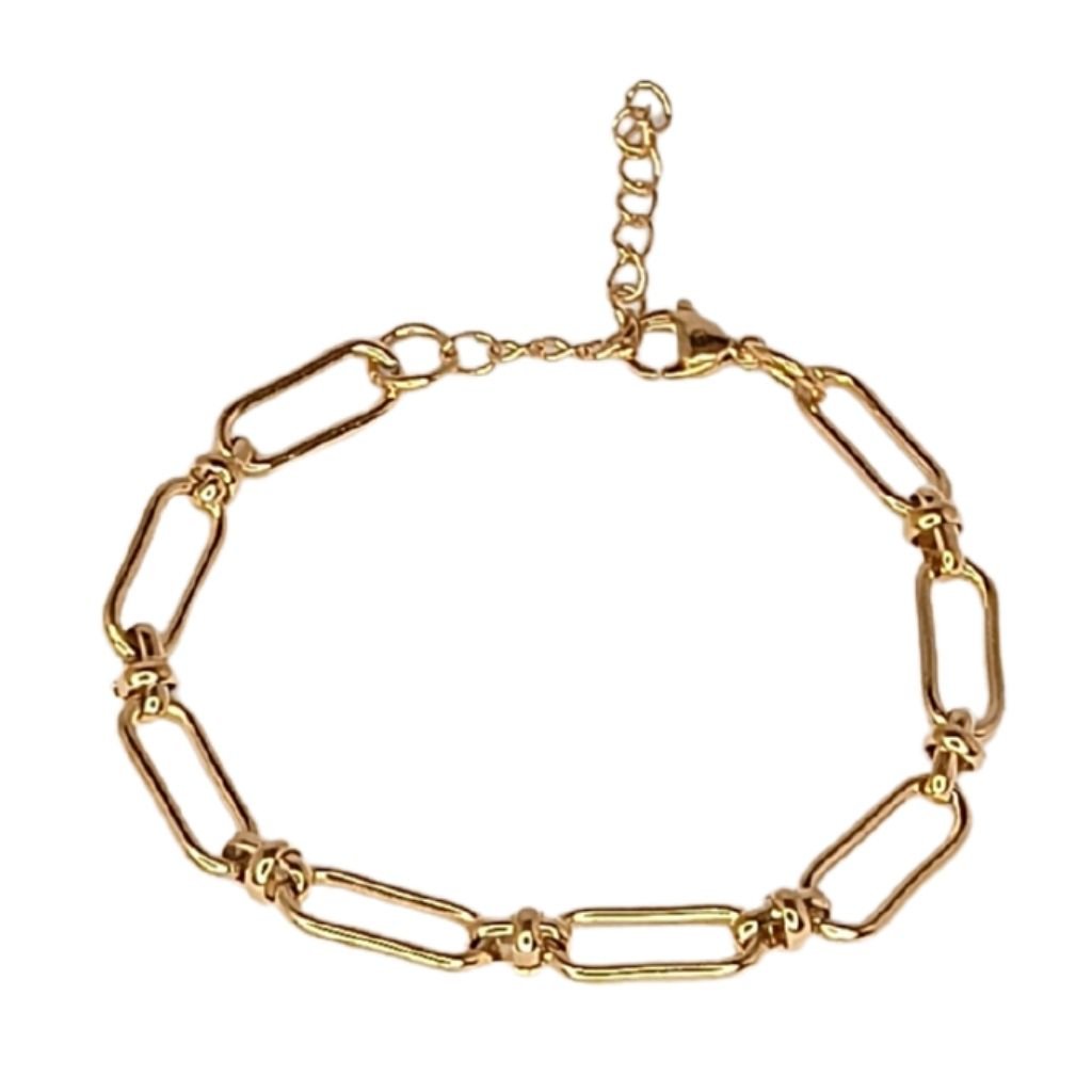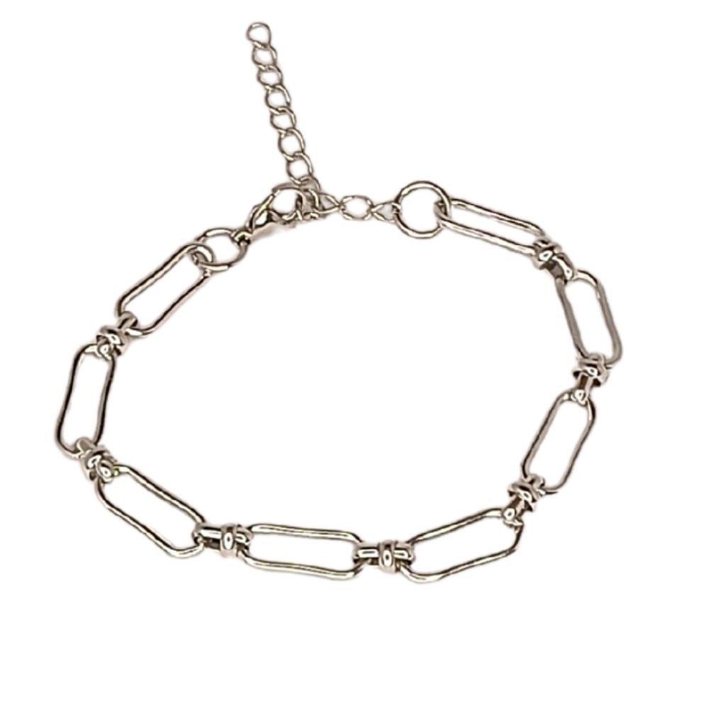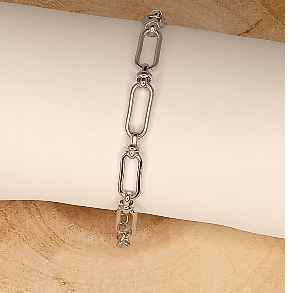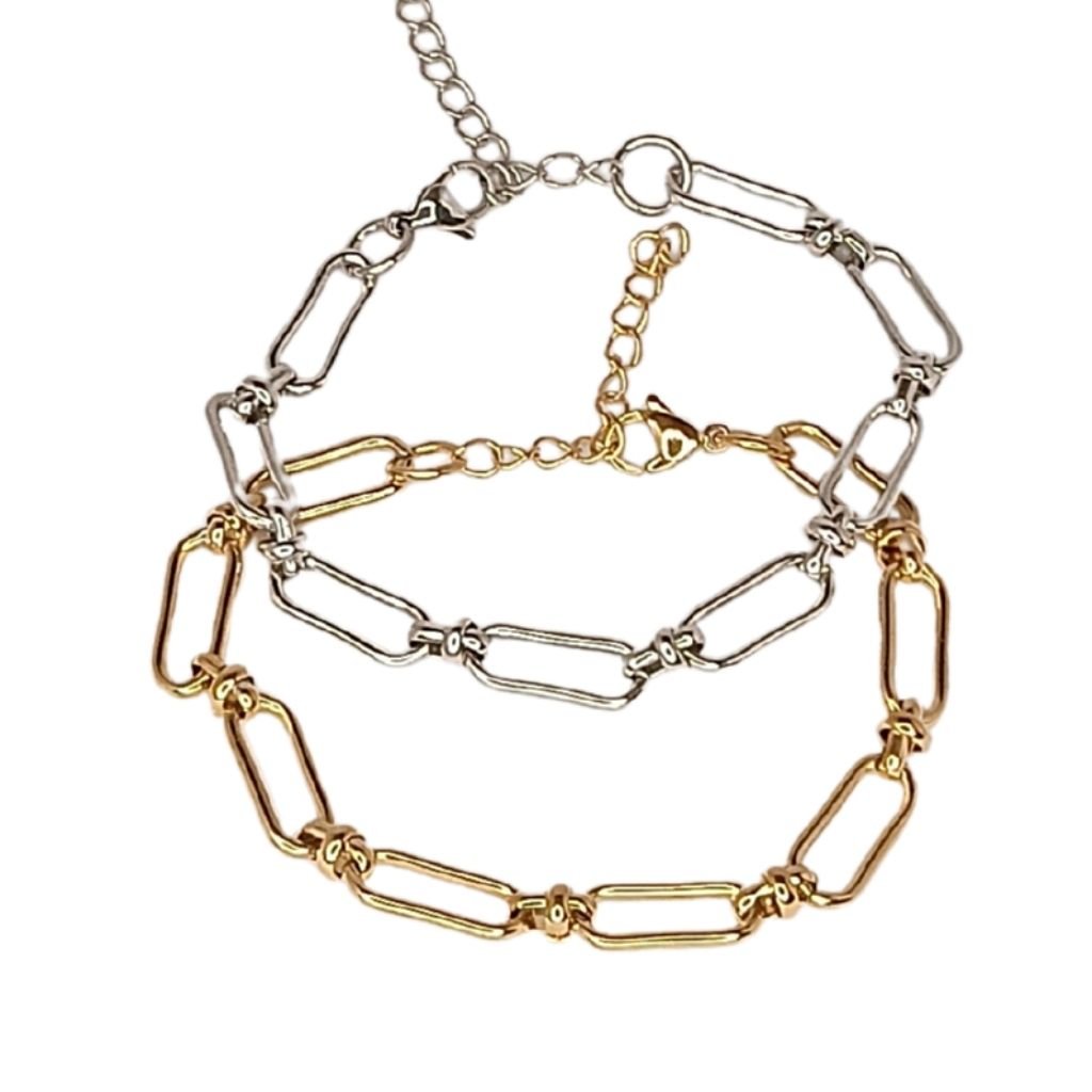 Μοντέρνο βραχιόλι από ανοξείδωτο ατσάλι με κρίκους τύπου chain. Διατίθεται σε δύο αποχρώσεις – χρυσό και ασημί – ώστε να επιλέξετε αυτό που ταιριάζει καλύτερα στο στυλ σας. Ένα must-have αξεσουάρ που συνδυάζεται εύκολα με κάθε εμφάνιση και μπορεί να φορεθεί μόνο του ή σε layering με άλλα βραχιόλια για πιο δυναμικό look.