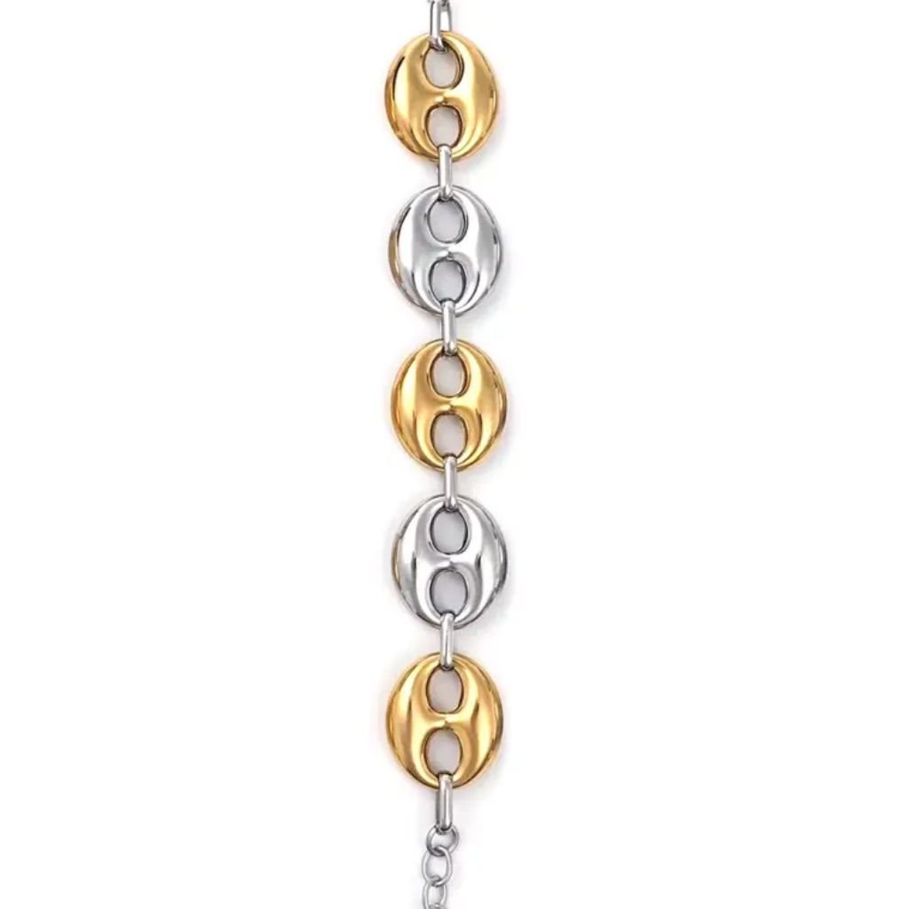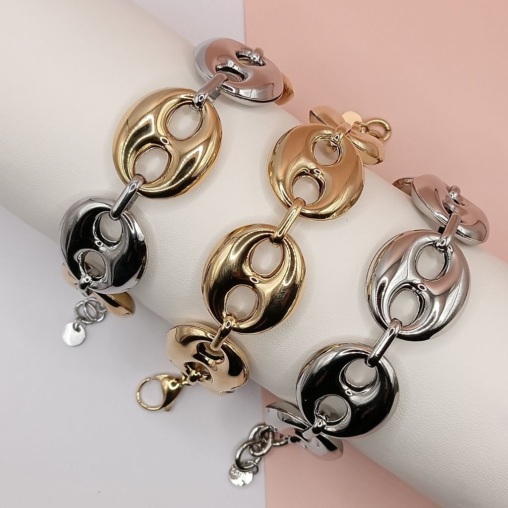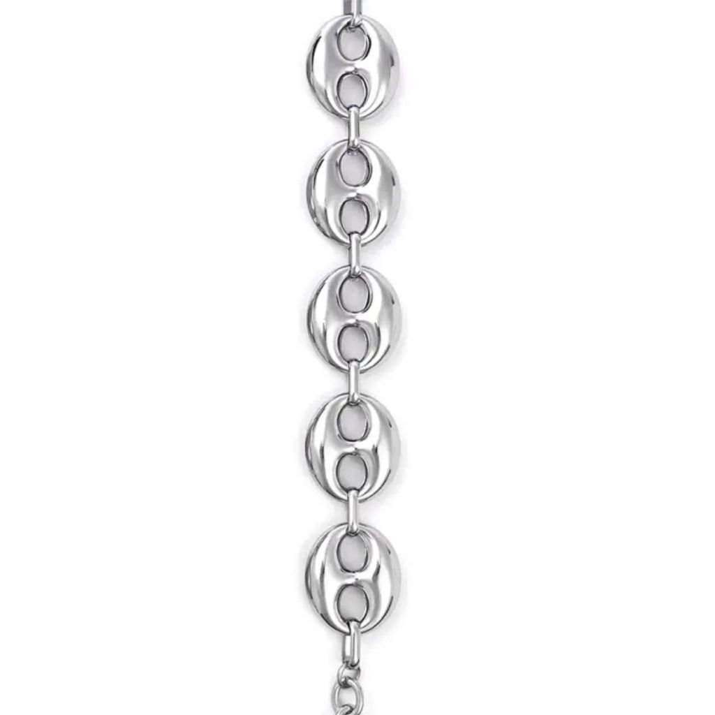 Εντυπωσιακό statement βραχιόλι από ανοξείδωτο ατσάλι με μεγάλους γυαλιστερούς κρίκους σε μοντέρνο design.