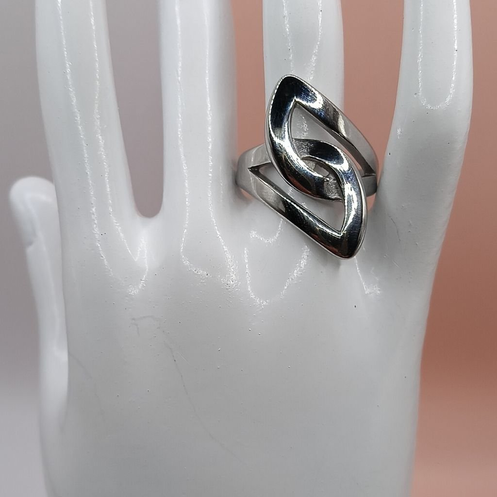 Σύγχρονο και κομψό δαχτυλίδι από ανοξείδωτο ατσάλι σε νουμερο 19, με ιδιαίτερο γεωμετρικό άνοιγμα που δημιουργεί ένα μοναδικό οπτικό αποτέλεσμα. Ένα minimal κόσμημα που μπορεί να φορεθεί μόνο του ή να συνδυαστεί με άλλα δαχτυλίδια για πιο μοντέρνο layering. Υποαλλεργικό και ανθεκτικό, δεν μαυρίζει και διατηρεί τη λάμψη του.