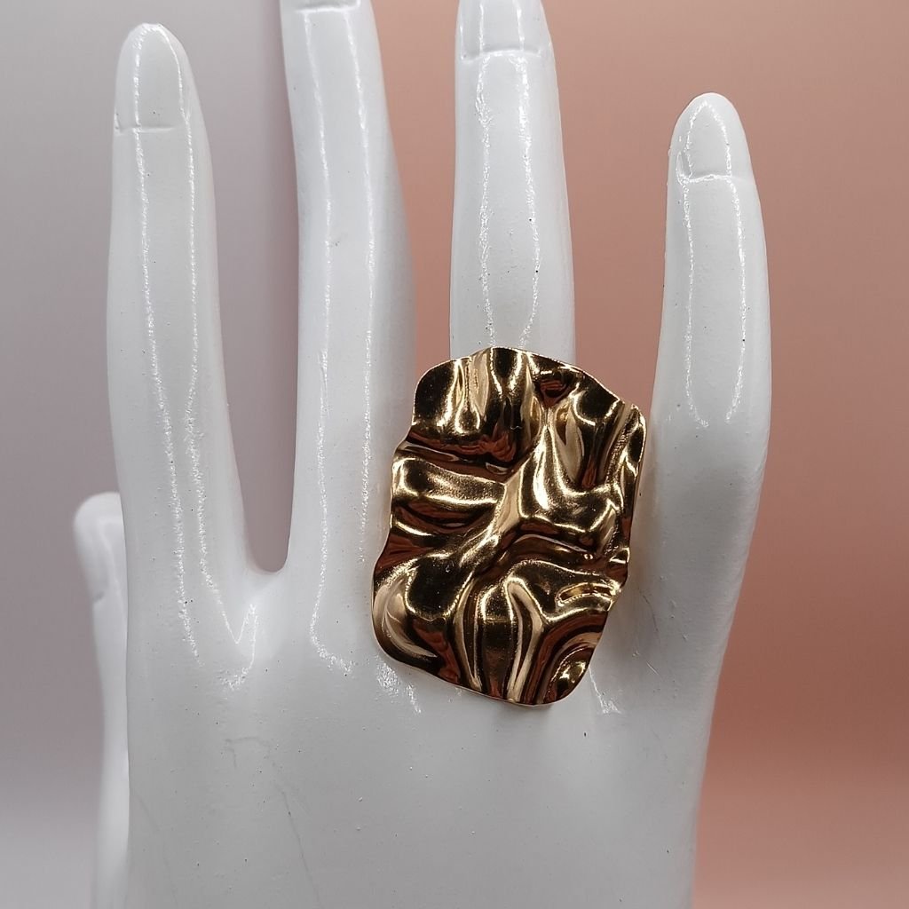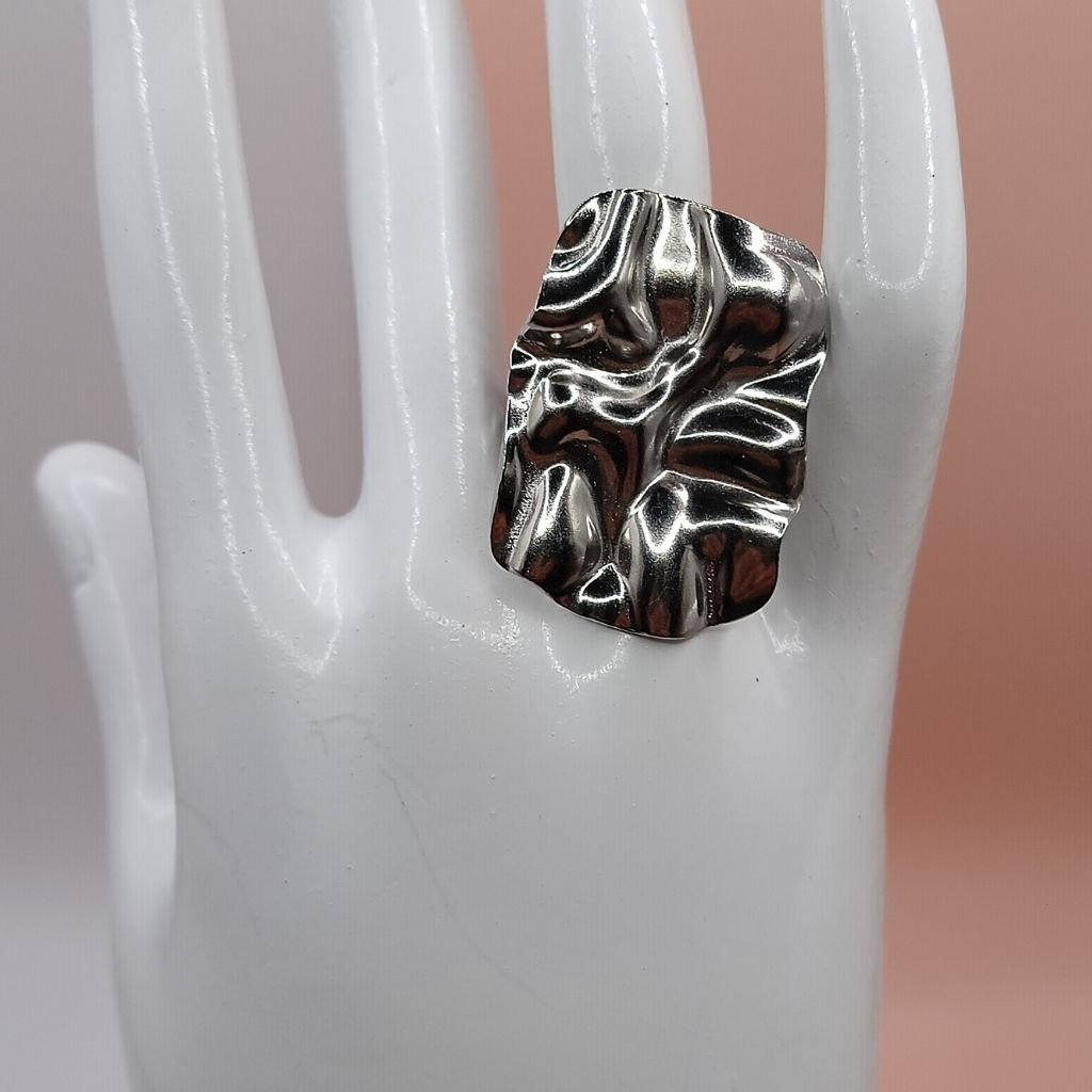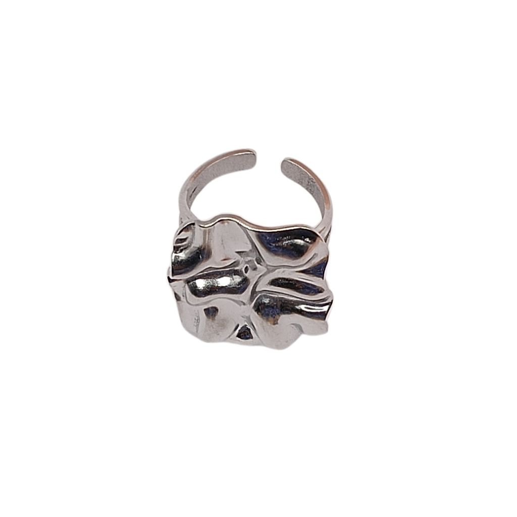 Statement δαχτυλίδι από ανοξείδωτο ατσάλι, με μοναδικό «crumpled» design που θυμίζει σφυρήλατη υφή και δίνει ξεχωριστό χαρακτήρα σε κάθε σας εμφάνιση. Διαθέσιμο σε χρυσό και ασημί χρώμα, με ανοιχτό σχεδιασμό για να προσαρμόζεται εύκολα σε κάθε μέγεθος δαχτύλου. Ιδανικό για να ολοκληρώσετε ένα μοντέρνο ή artistic look.