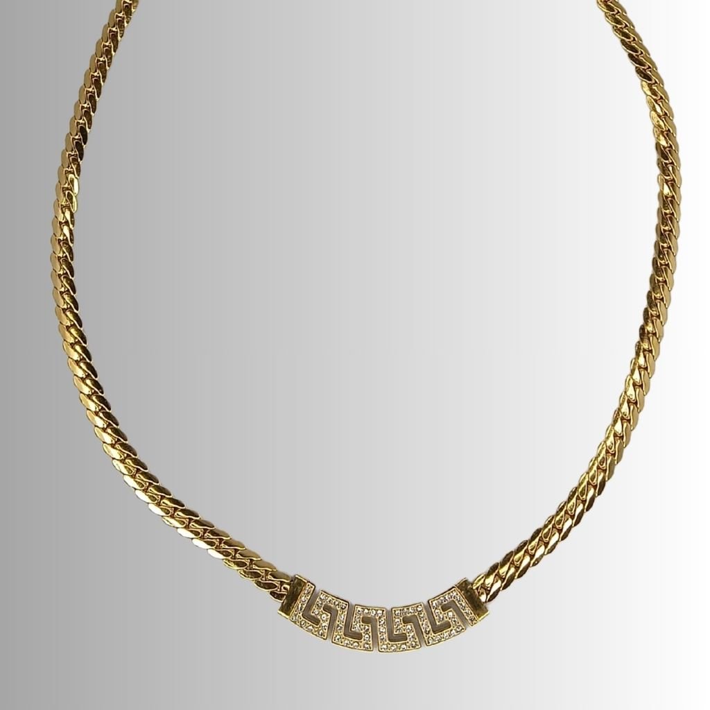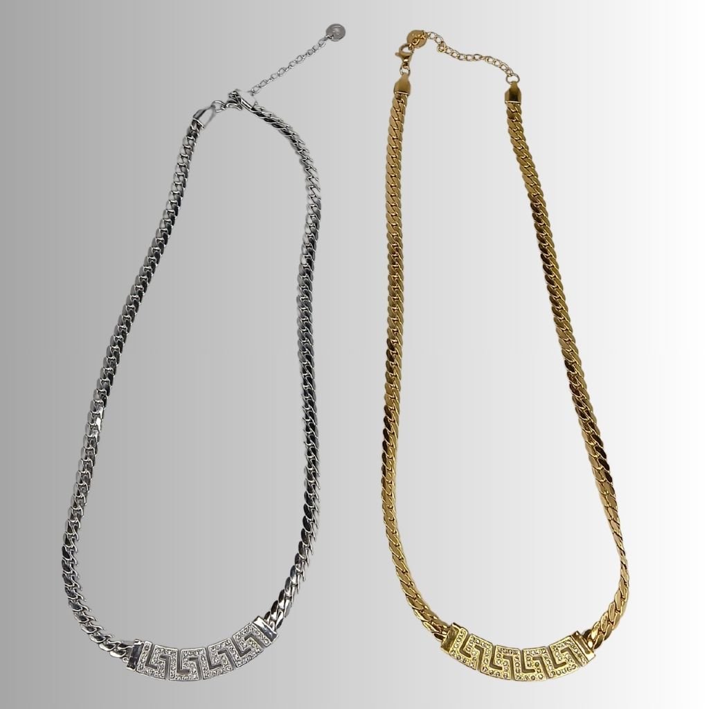 Κομψό κολιέ από ανοξείδωτο ατσάλι με κλασικό σχέδιο μαίανδρο (Greek Key) διακοσμημένο με λαμπερά ζιργκόν. Ένα διαχρονικό μοτίβο που συμβολίζει την αιωνιότητα και την αρμονία, ιδανικό για γυναίκες που αγαπούν το ελληνικό στυλ με μοντέρνα πινελιά. Διατίθεται σε ασημί και χρυσό χρώμα.