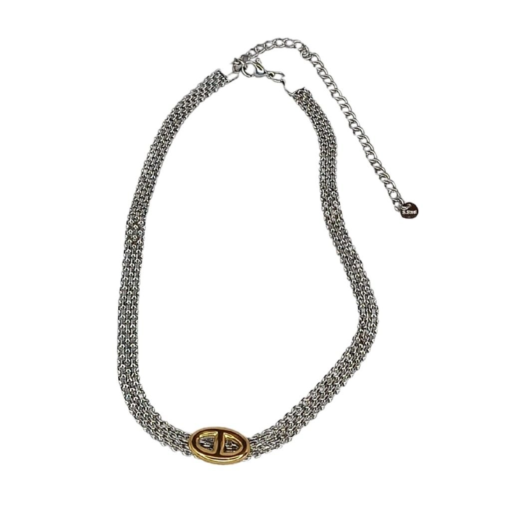 Στο κέντρο διαθέτει οβάλ δίχρωμο στοιχείο (ασημί & χρυσό) με διακριτικές λεπτομέρειες που χαρίζουν ιδιαίτερο χαρακτήρα.