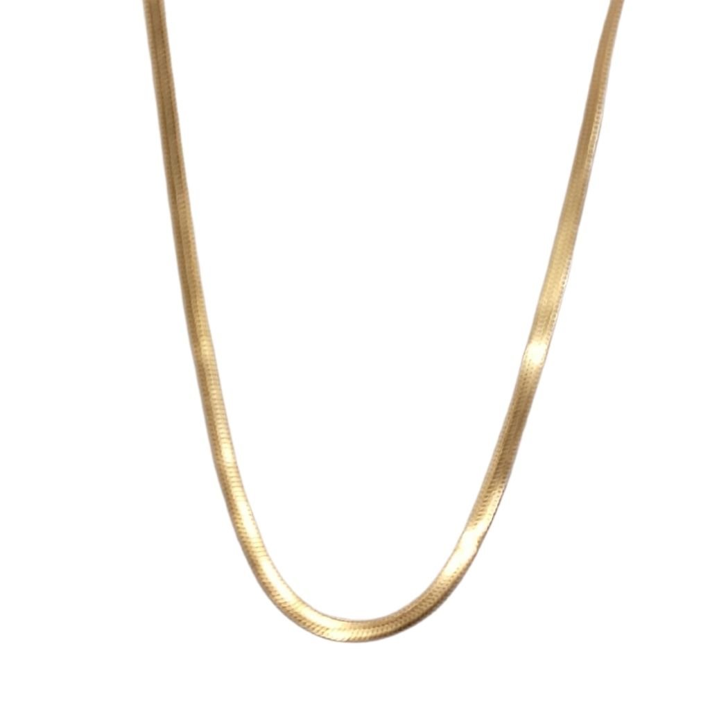 Μοντέρνο κολιέ τύπου “φίδι” από ανοξείδωτο ατσάλι σε χρυσό χρώμα, ιδανικό για καθημερινές και πιο επίσημες εμφανίσεις. Λείο, minimal σχέδιο που φοριέται άνετα μόνο του ή με άλλα κολιέ για layering.