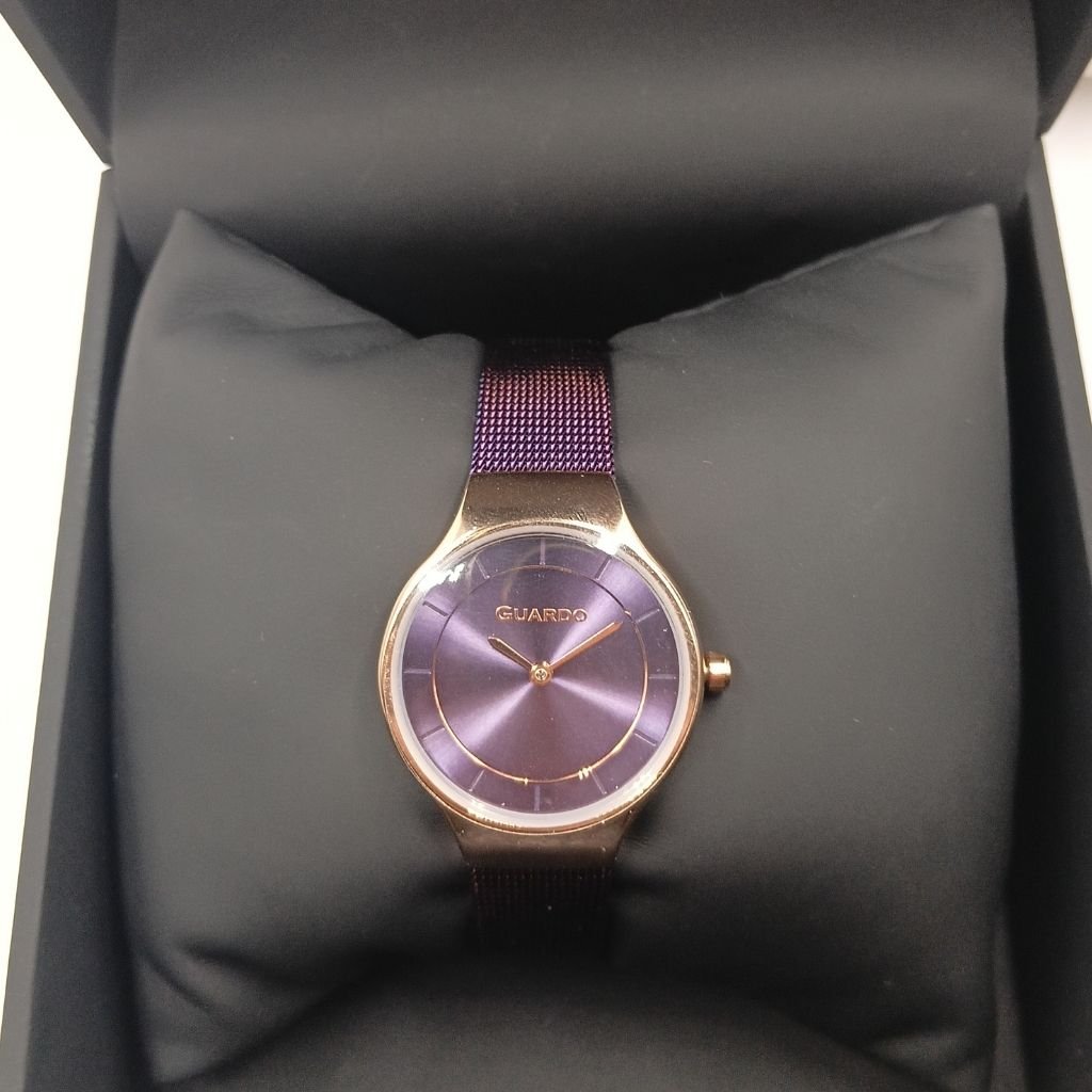 Κομψό και μοντέρνο ρολόι με ροζ χρυσή κάσα και βαθύ μοβ καντράν σε μεταλλική απόχρωση. Το mesh μπρασελέ σε ίδια απόχρωση προσφέρει άνεση και στυλ για κάθε μέρα.