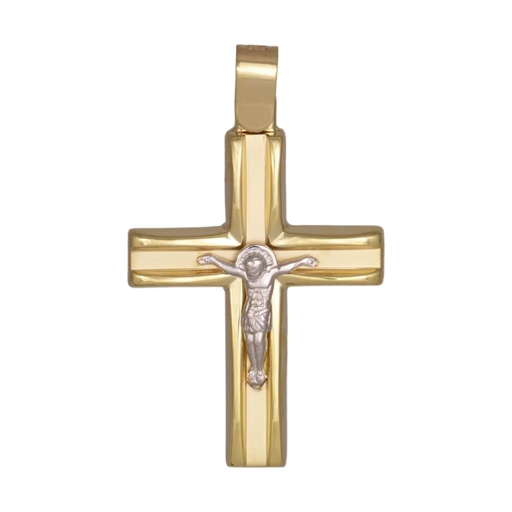 Σταυρός με κατασκευή από χρυσό 14 καρατίων, σε ματ φινίρισμα με λουστρέ λεπτομέρειες περιμετρικά, και τον Εσταυρωμένο στο κέντρο από λευκόχρυσο 14 καρατίων. Συνδυάστε τον με της αλυσίδα της αρεσκείας σας και χαρίστε ένα διαχρονικό δώρο σε ένα νεογέννητο αγοράκι μαζί με την αγάπη σας!