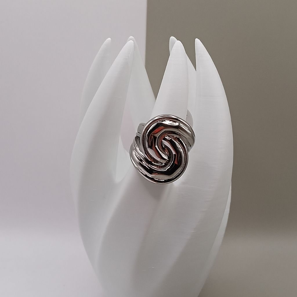 Κομψό δαχτυλίδι από ανοξείδωτο ατσάλι, σε ασημί απόχρωση με μοναδικό σχέδιο σπείρας/ροζέτας. Ένα μοντέρνο και διαχρονικό κόσμημα που ταιριάζει σε κάθε εμφάνιση.