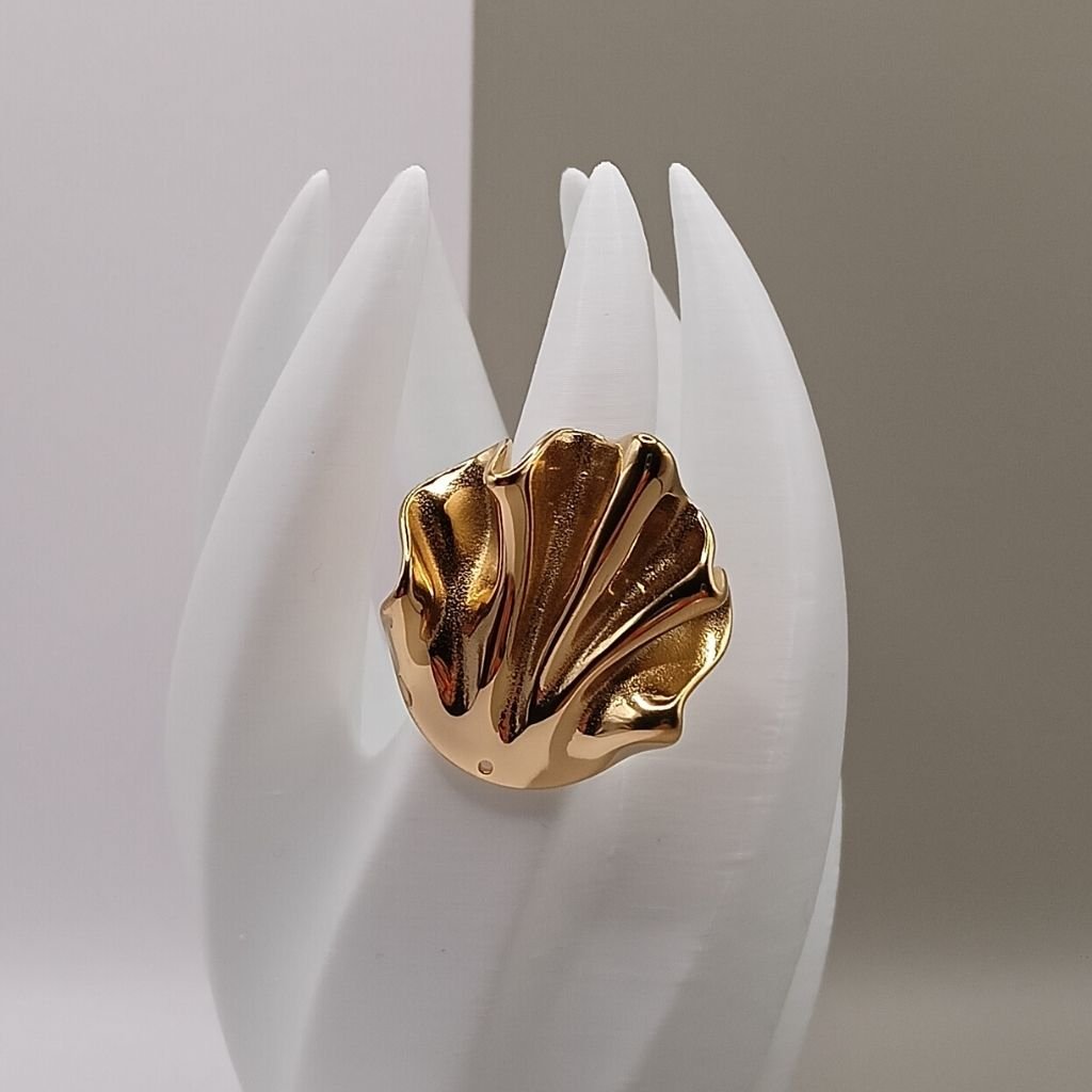 Μοναδικό ανοιγόμενο δαχτυλίδι από ανοξείδωτο ατσάλι, σε εντυπωσιακό σχέδιο που θυμίζει θαλάσσιο κύμα ή κοχύλι. Η χρυσή γυαλιστερή επιφάνεια προσθέτει κομψότητα και λάμψη σε κάθε εμφάνιση. Ρυθμιζόμενο για τέλεια εφαρμογή.