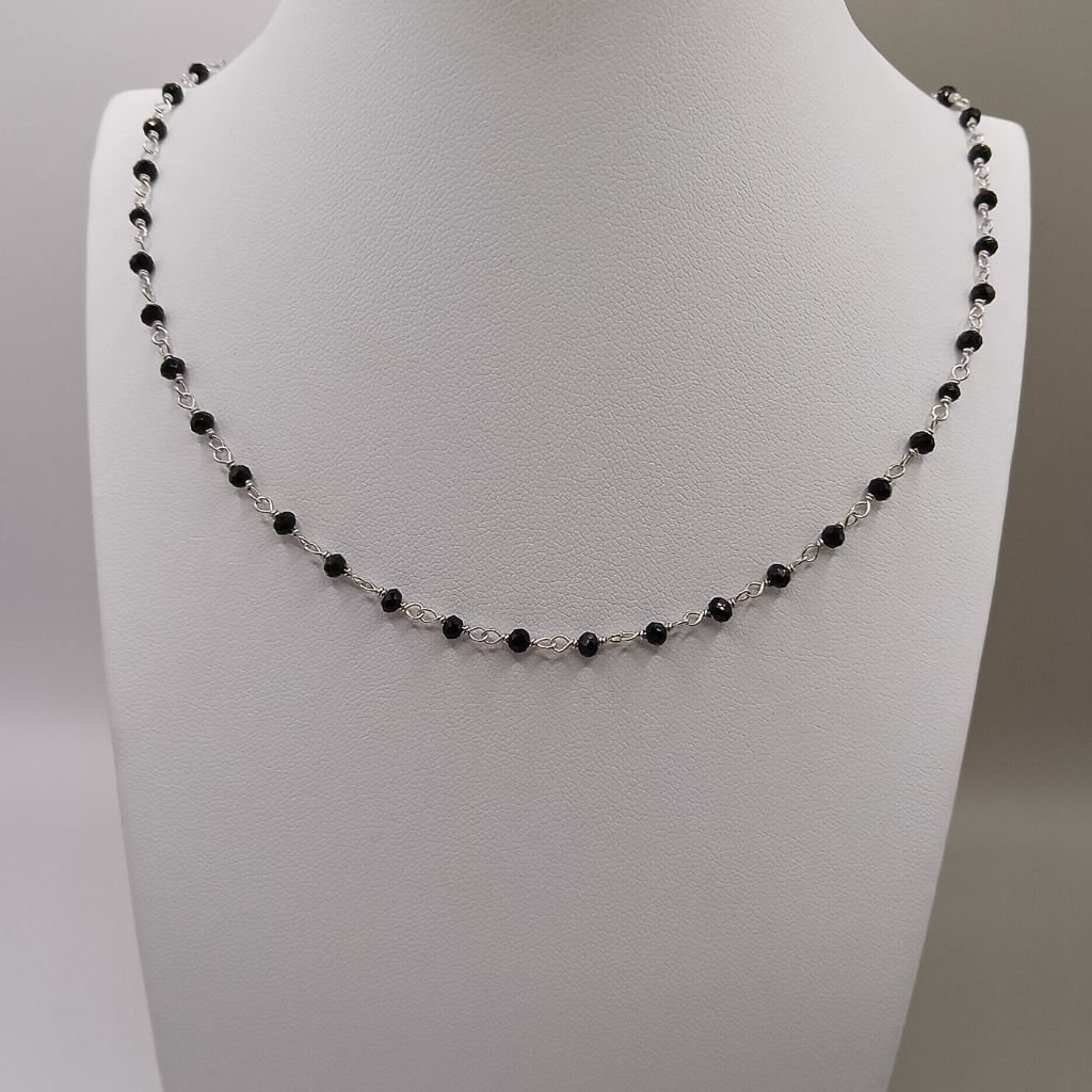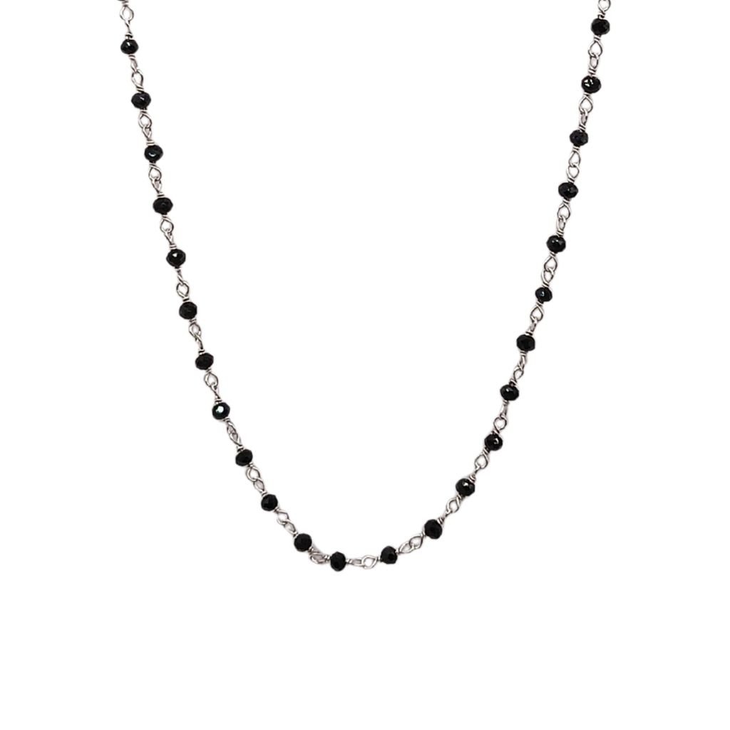 Μοντέρνο και εντυπωσιακό κολιέ από ασήμι 925, διακοσμημένο με μαύρες χάντρες σε όλη του τη γραμμή. Ένα statement κόσμημα που συνδυάζεται εύκολα με κάθε outfit για ιδιαίτερο στυλ.