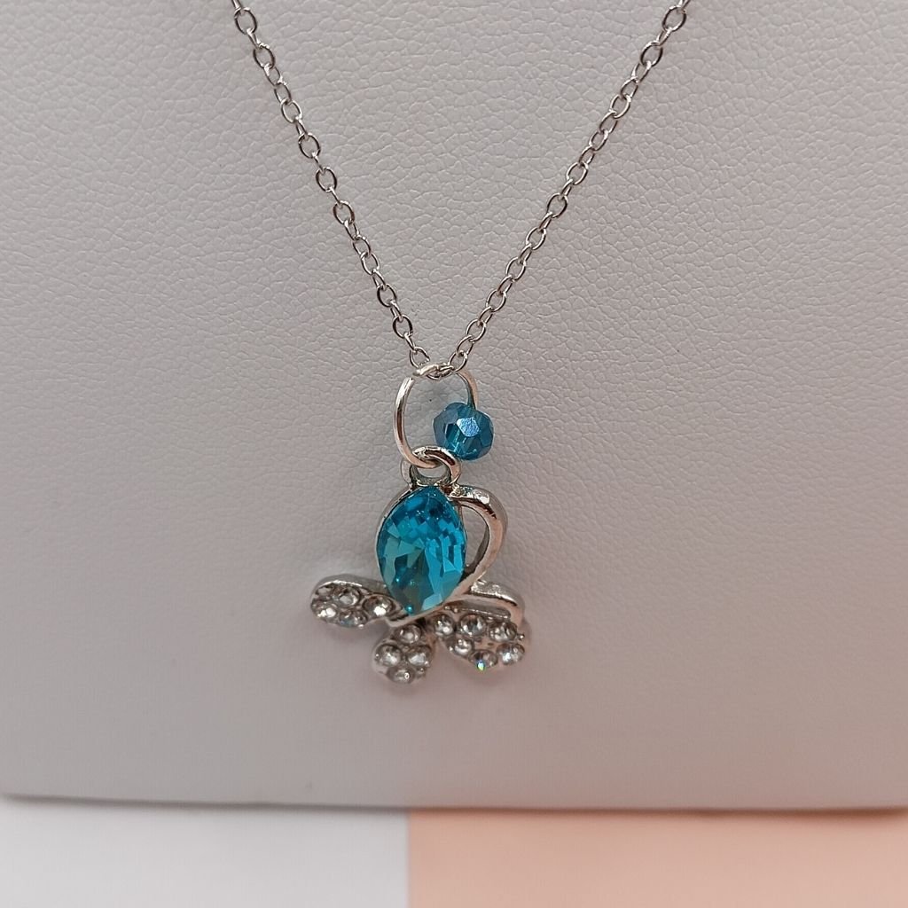 Ένα κομψό κολιέ από ανοξείδωτο ατσάλι με μοναδικό μενταγιόν που συνδυάζει μπλε κρύσταλλο και λαμπερά ζιργκόν, για εντυπωσιακή αλλά και διακριτική εμφάνιση.