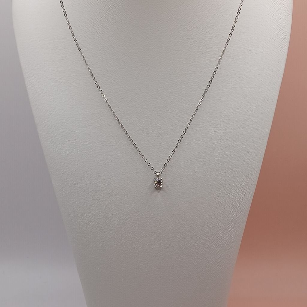 Μίνιμαλ και κομψό λευκόχρυσο κολιέ 14 καρατίων με μονό ζιργκόν, ιδανικό για διακριτική λάμψη στην καθημερινή σου εμφάνιση.