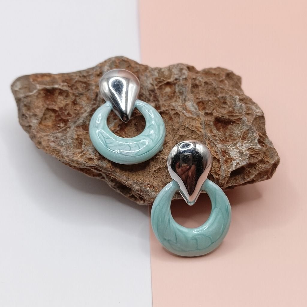 Σκουλαρίκια από ανοξείδωτο ατσάλι με μαρμαρέ γαλάζιο στοιχείο, που συνδυάζουν τη λάμψη του μετάλλου με το παιχνιδιάρικο χρώμα. Μοντέρνα και εντυπωσιακά, ιδανικά για κάθε στιγμή της ημέρας.