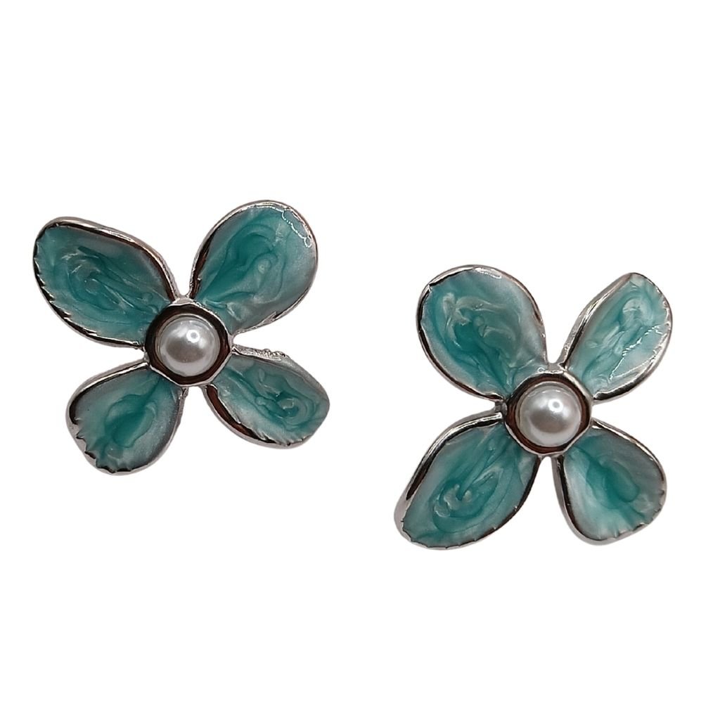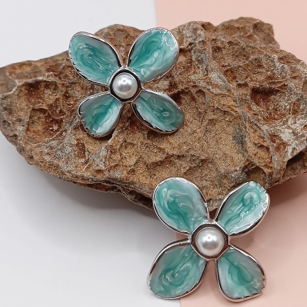 Μοναδικά σκουλαρίκια σε σχέδιο λουλουδιού από ανοξείδωτο ατσάλι, διακοσμημένα με μαρμαρέ πράσινα πέταλα και ένα φίνο μαργαριτάρι στο κέντρο. Ένα ρομαντικό και ταυτόχρονα μοντέρνο κόσμημα που θα κλέψει τις εντυπώσεις.