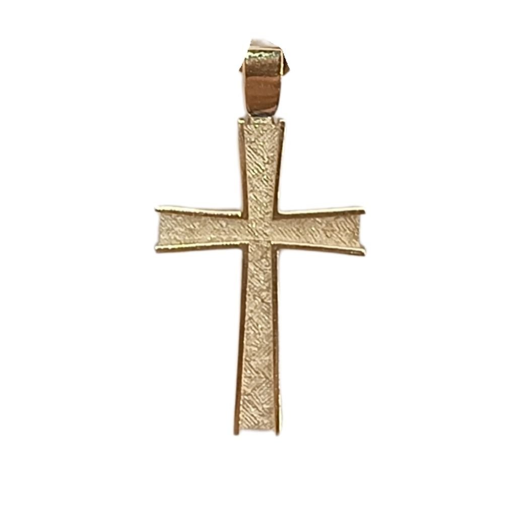 Κλασικός σταυρός με ανάγλυφη ματ υφή που του χαρίζει διακριτική λάμψη και ιδιαίτερο χαρακτήρα.Ιδανική επιλογή για όσους θέλουν έναν σταυρό λιτό αλλά ξεχωριστό, που συνδυάζει την παράδοση με το στυλ.
