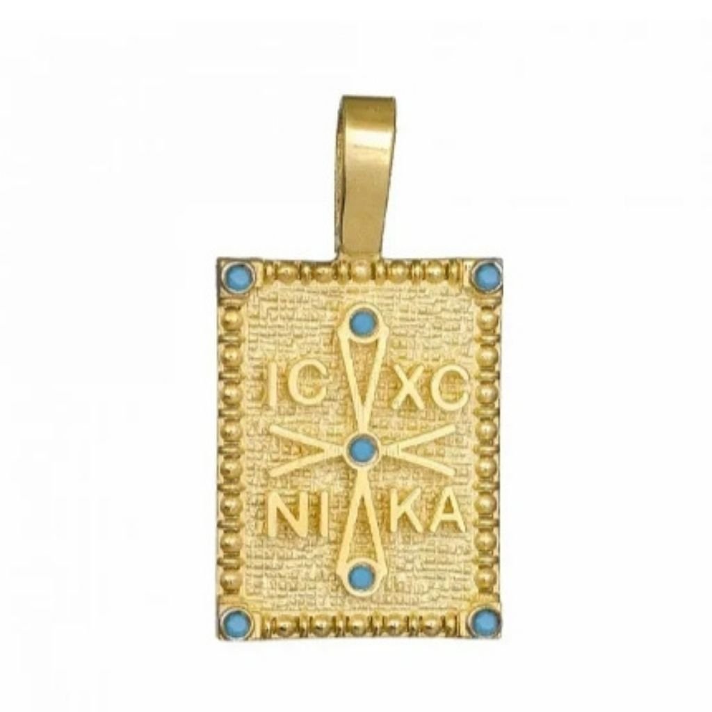 ενώ στην άλλη πλευρά δεσπόζει ο σταυρός IC XC NIKA με μικρά μπλε σμάλτα.