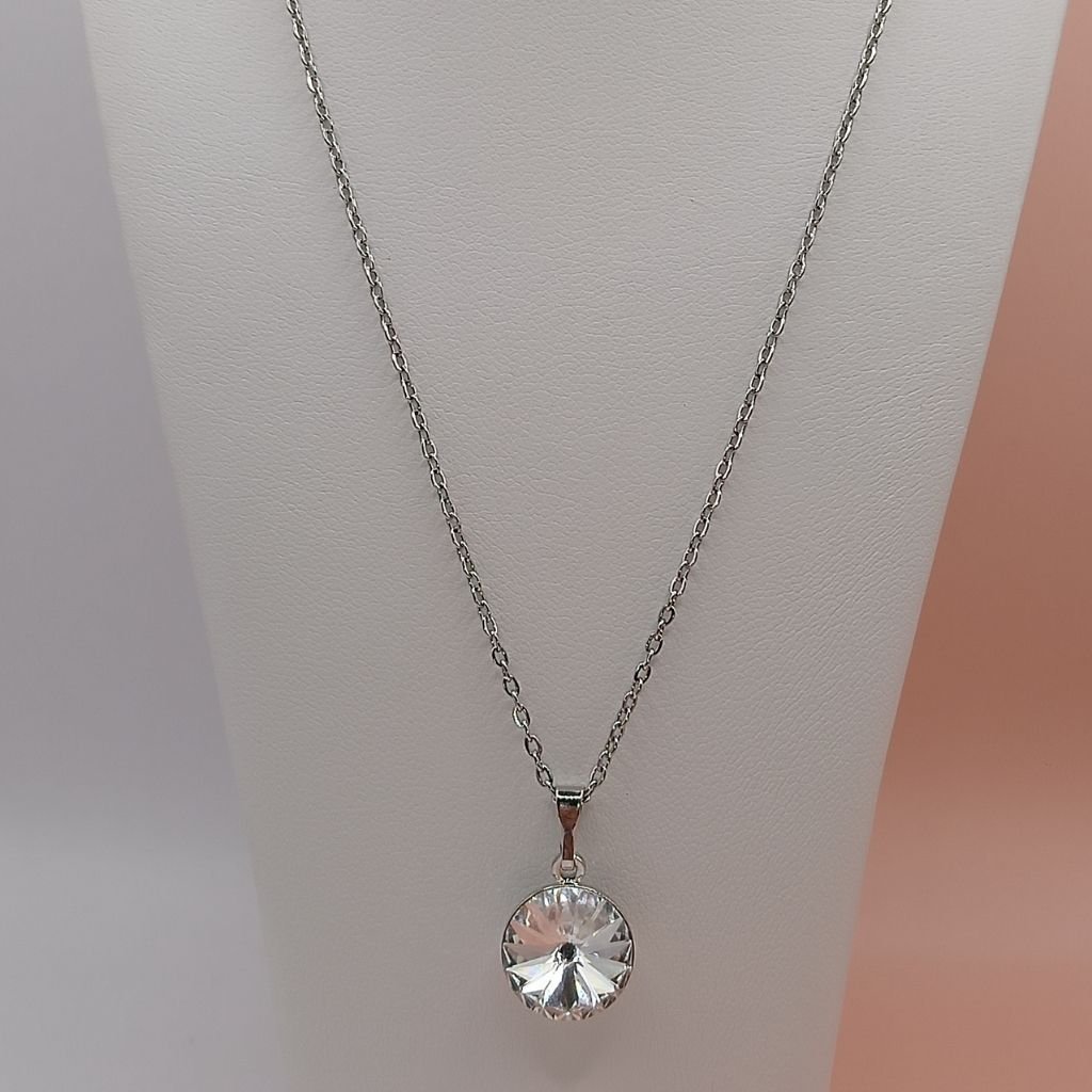 Κλασικό χειροποίητο κρεμαστό κόσμημα με κρύσταλλο Swarovski σε χρώμα Crystal (διάφανο). Ο σχεδιασμός βασίζεται στην απλότητα ενός κρυστάλλου κοπής rivoli. Το μέγεθος του κρυστάλλου rivoli είναι 12 x 12 mm. Το μήκος της αλυσίδας είναι 42 cm, συν 7 cm μήκος επέκτασης, ώστε να μπορείτε να προσαρμόσετε το μενταγιόν ακριβώς στις ανάγκες σας. Το κρεμαστό κόσμημα είναι κατασκευασμένο με επιμετάλλωση με ρόδιο, το οποίο βελτιώνει τη διάρκεια ζωής του κοσμήματος και είναι αντιαλλεργικό. Το κολιέ έχει σχεδιαστεί και κατασκευαστεί στη Τσεχία από την εταιρεία FaBOS.