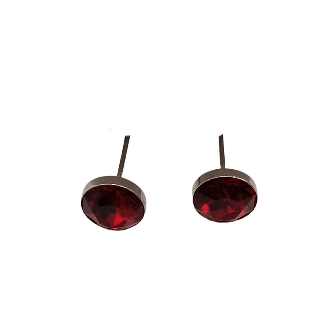 Χειροποίητα σκουλαρίκια καρφωτά με κρύσταλλο swarovski Light Siam (βαθύ κόκκινο) . Το μέγεθος του κρυστάλλου είναι 0,9 x 0,9 εκατοστά.
