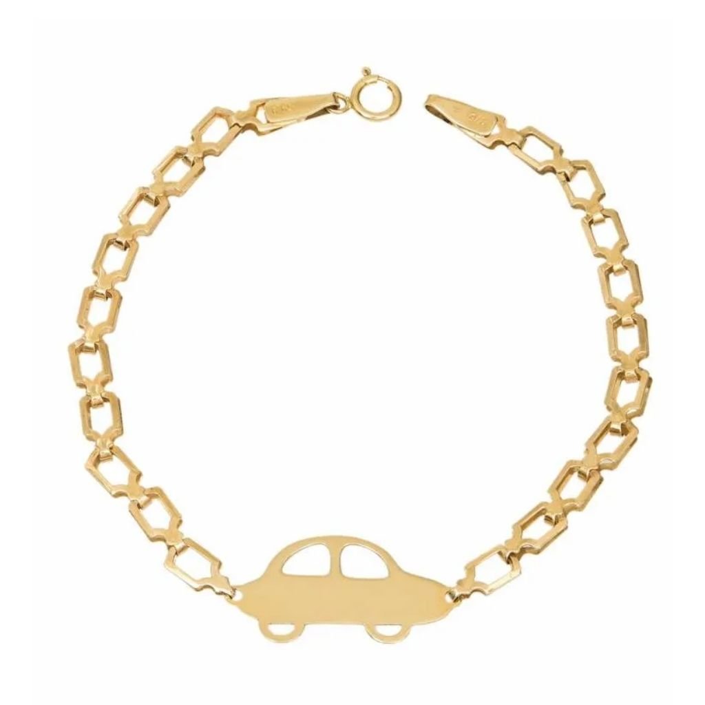 Παιδικό βραχιόλι ταυτότητα κατασκευασμένο από χρυσό 9 καρατίων. Πανέμορφο κόσμημα στολισμένο με ταυτότητα αυτοκινητάκι σε διάτρητο σχεδιασμό και λουστρέ φινίρισμα. Κάντε το πιο όμορφο δώρο σε ένα αγοράκι την ημέρα της βάπτισης του.