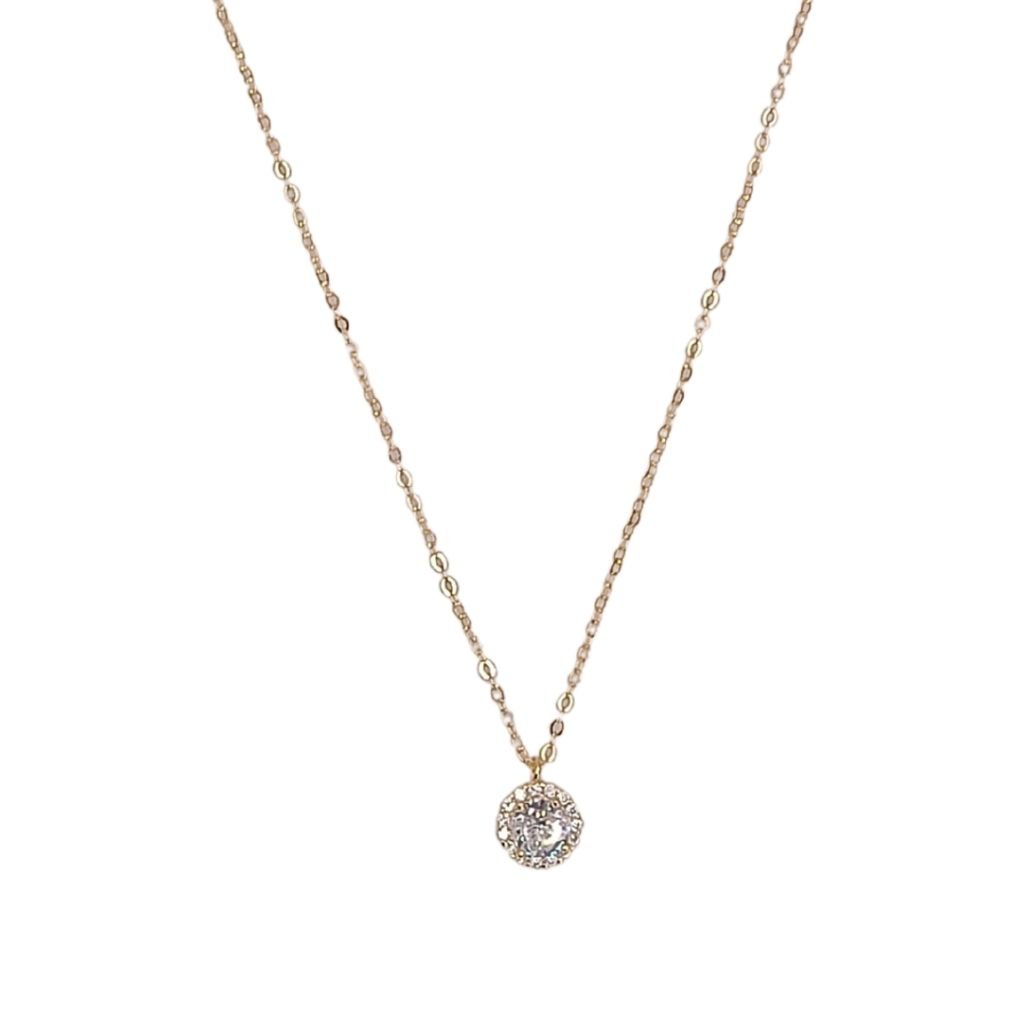 Κομψό κολιέ από επιχρυσωμένο ασήμι 925 με στρογγυλό κρεμαστό, διακοσμημένο με λαμπερές πέτρες ζιργκόν που χαρίζουν μοναδική λάμψη. Ένα διαχρονικό σχέδιο που συνδυάζει απλότητα και κομψότητα, ιδανικό για καθημερινή χρήση αλλά και για πιο ιδιαίτερες στιγμές.