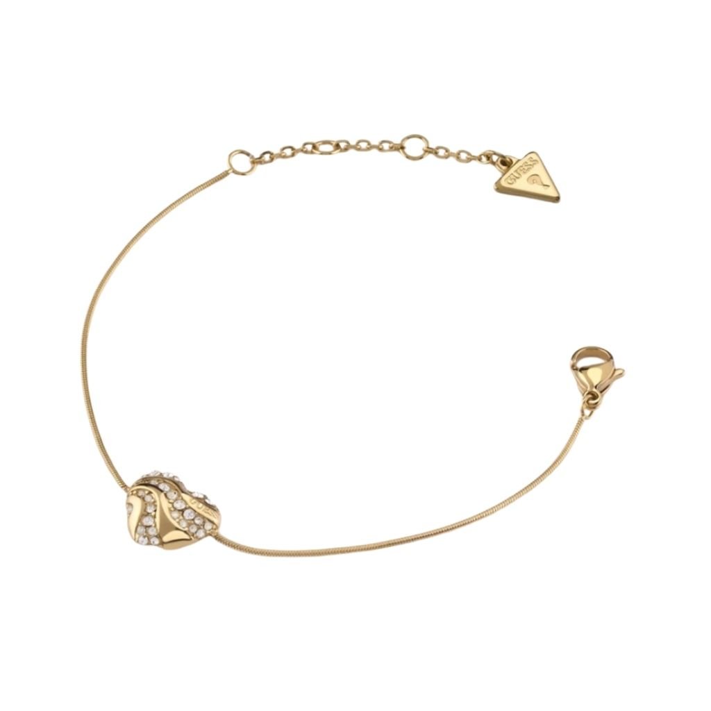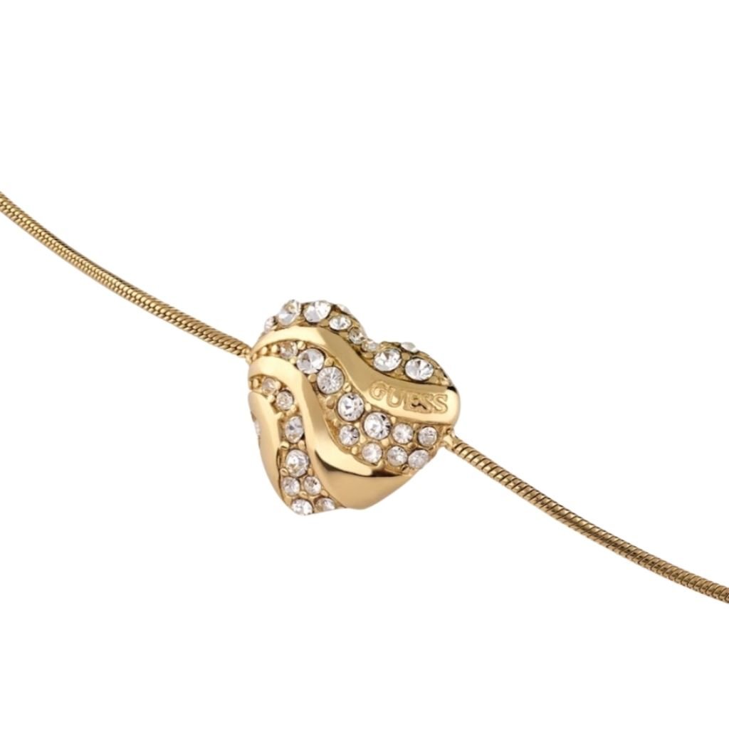 Ρομαντικό και μοντέρνο βραχιόλι Guess σε χρυσό τόνο, με λεπτή snake αλυσίδα και κεντρική καρδιά διακοσμημένη με λαμπερά ζιργκόν. Ένα κόσμημα που συνδυάζει φινέτσα και συναίσθημα.