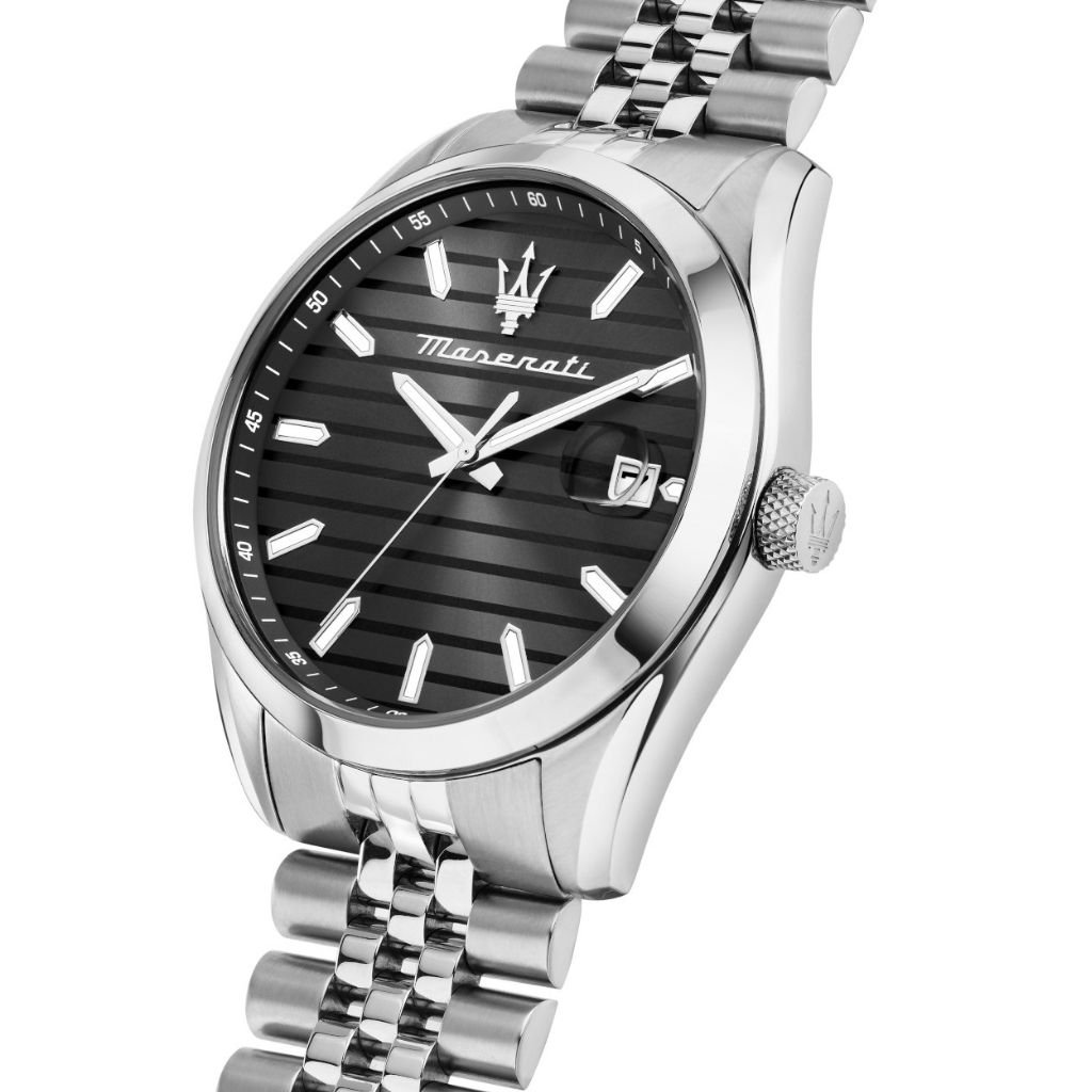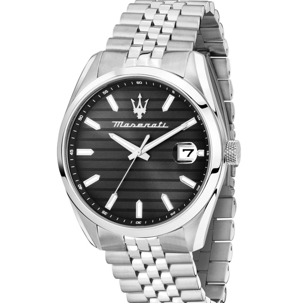 Ανδρικό ρολόι MASERATI ATTRAZIONE R8853151026 διαμέτρου 43mm, με μηχανισμό Quartz Ακριβείας, μαύρο καντράν, κάσα και μπρασελέ από ανοξείδωτο ατσάλι.