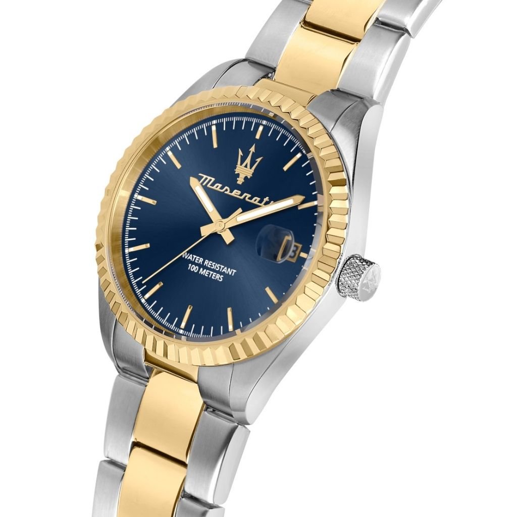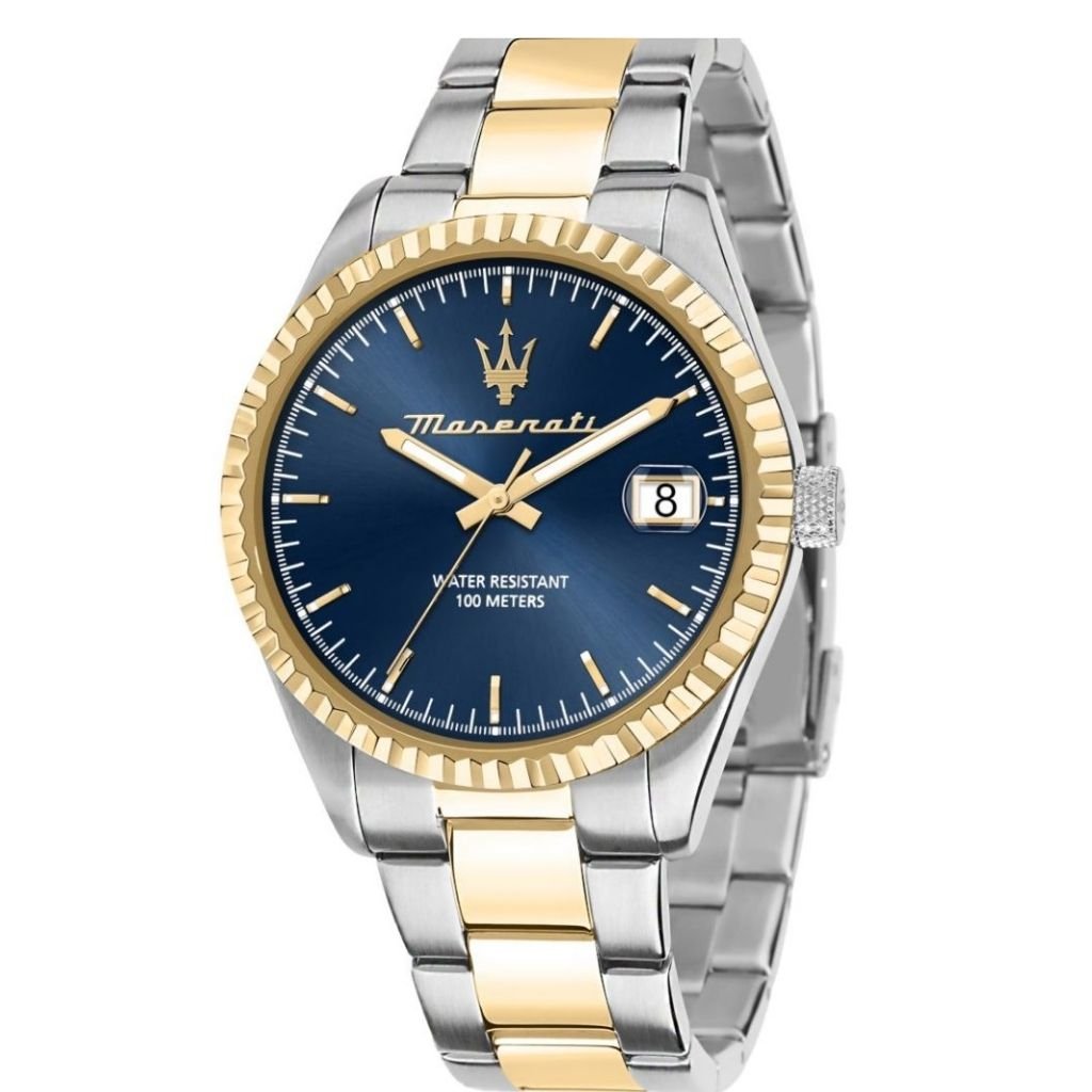 Ανδρικό ρολόι MASERATI COMPETIZIONE R8853100027 διαμέτρου 43mm, με μηχανισμό QUARTZ ακριβείας, μπλε καντράν, κάσα και μπρασελέ από ανοξείδωτο ατσάλι.