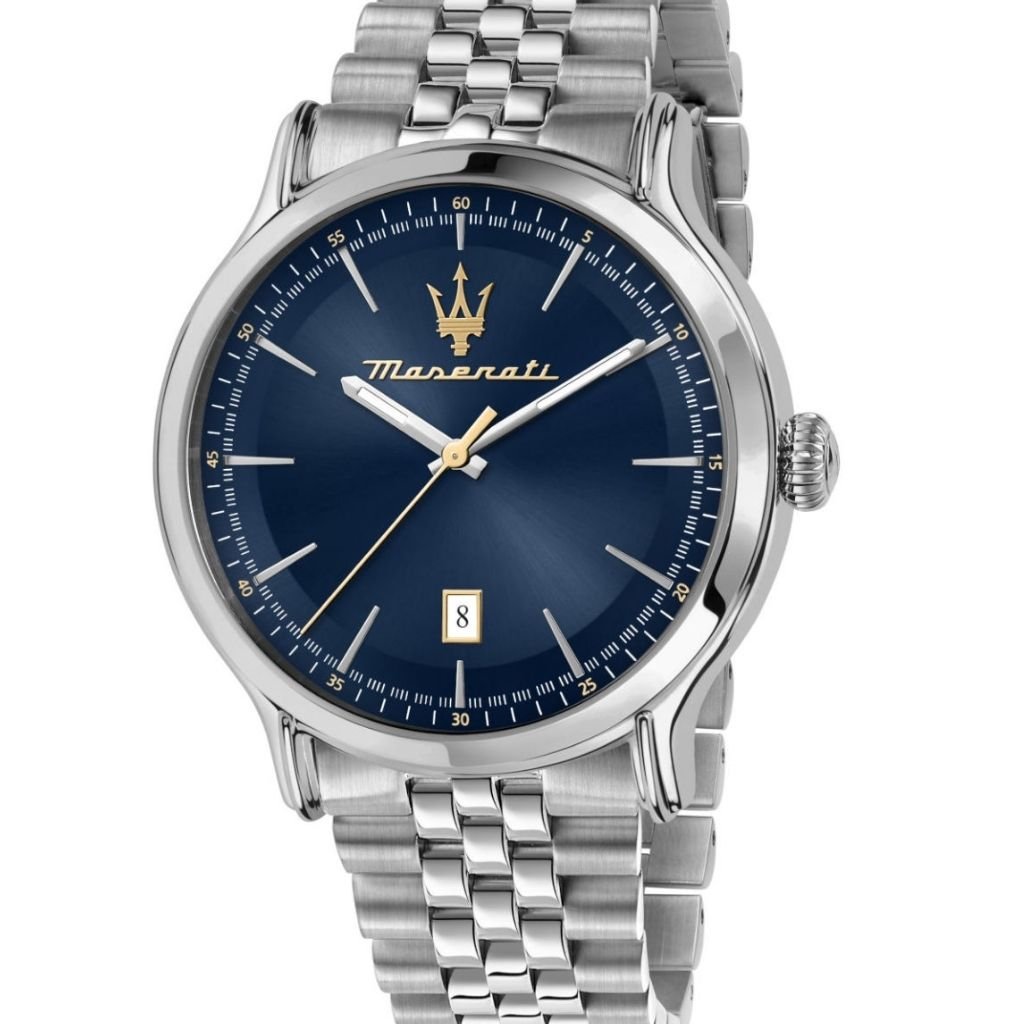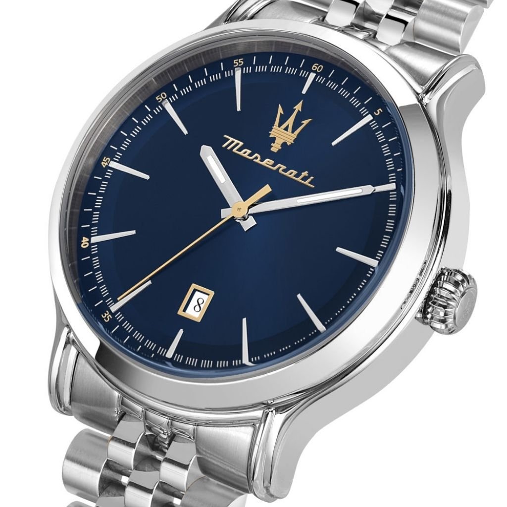 Αντρικό ρολόι διαμέτρου 42mm με μηχανισμό QUARTZ ακριβείας. Έχει μπλε καντράν με ασημένιους & χρυσούς δείκτες, λεπτομέρειες και ένδειξη ημερομηνίας. Η κάσα του είναι από ανοξείδωτο ατσάλι με κρύσταλλο από ορυκτό κρύσταλλο ειδικής σκλήρυνσης. Έχει μπρασελέ από ανοξείδωτο ατσάλι και κούμπωμα ασφαλείας. Είναι αδιάβροχο (10 ΑΤΜ).